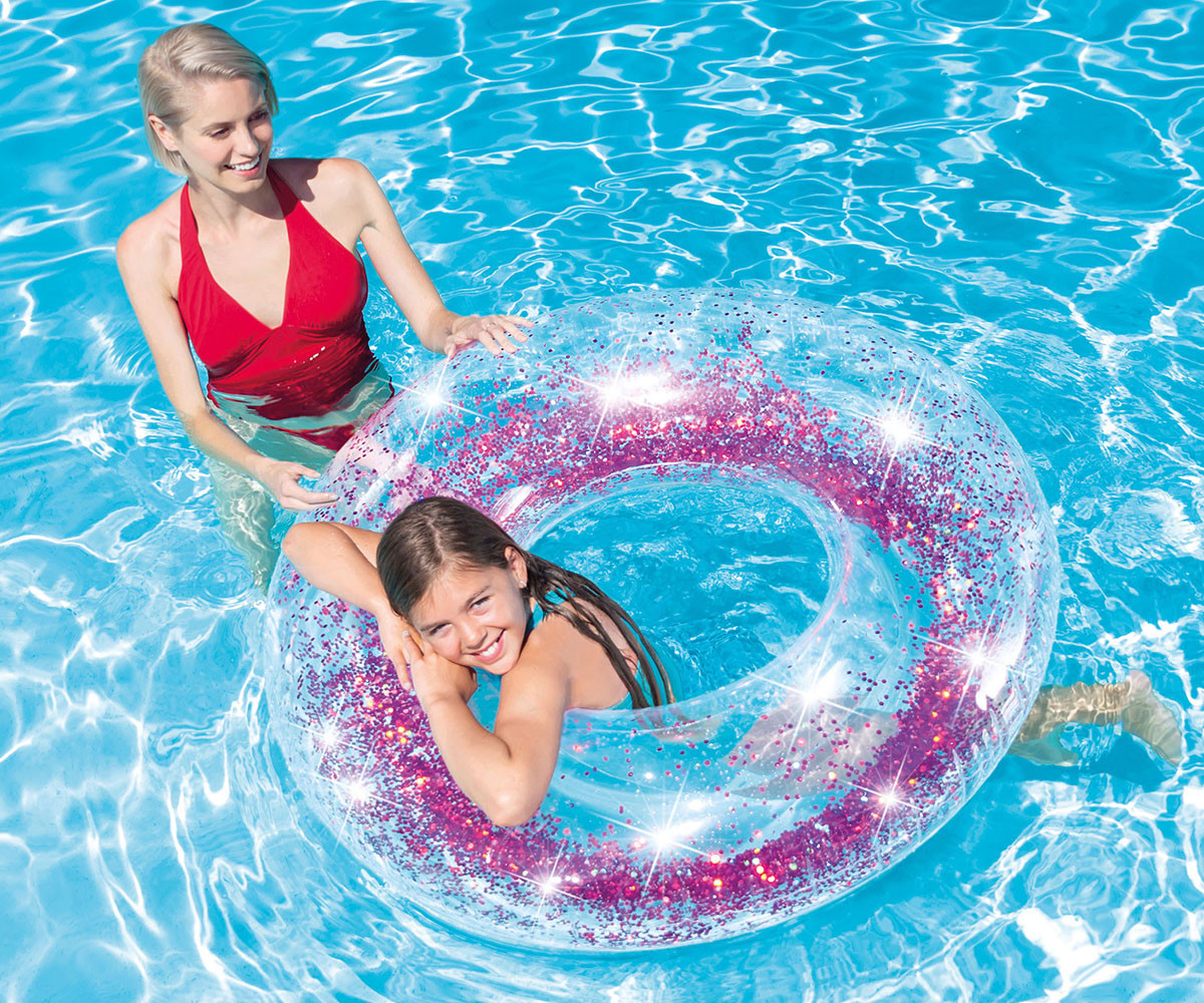Детски прозрачен надуваем пояс INTEX Transperent Glitter, розов