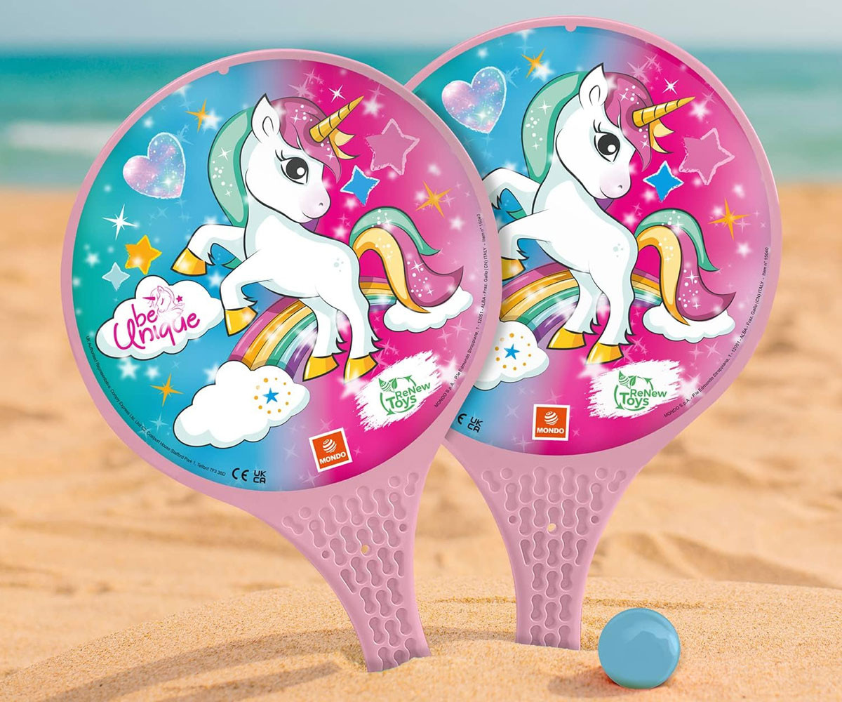 Mondo - Комплект хилки за плажен тенис, Еднорог с блясък