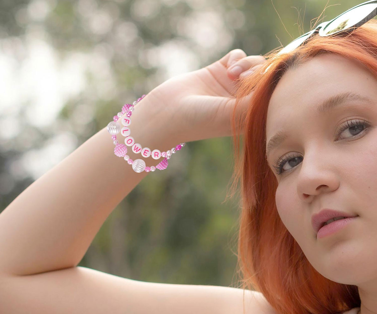 - Създайте гривна или колие, като нанижете мънистата върху включения ластичен конец.