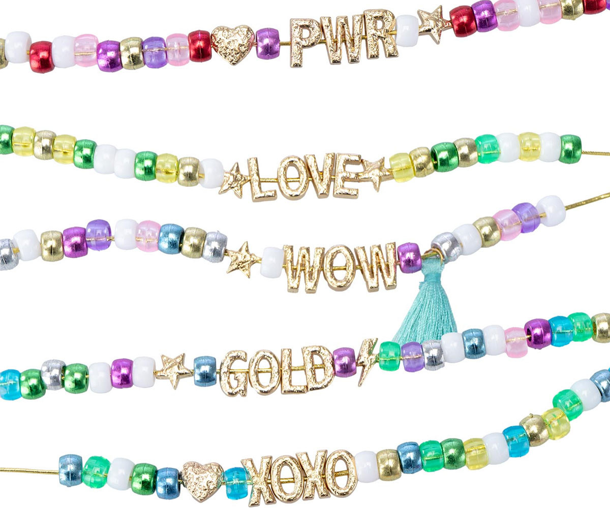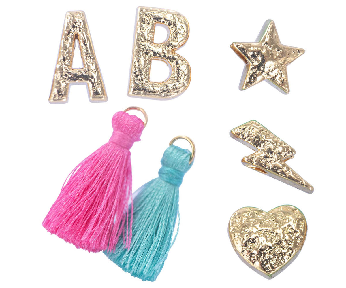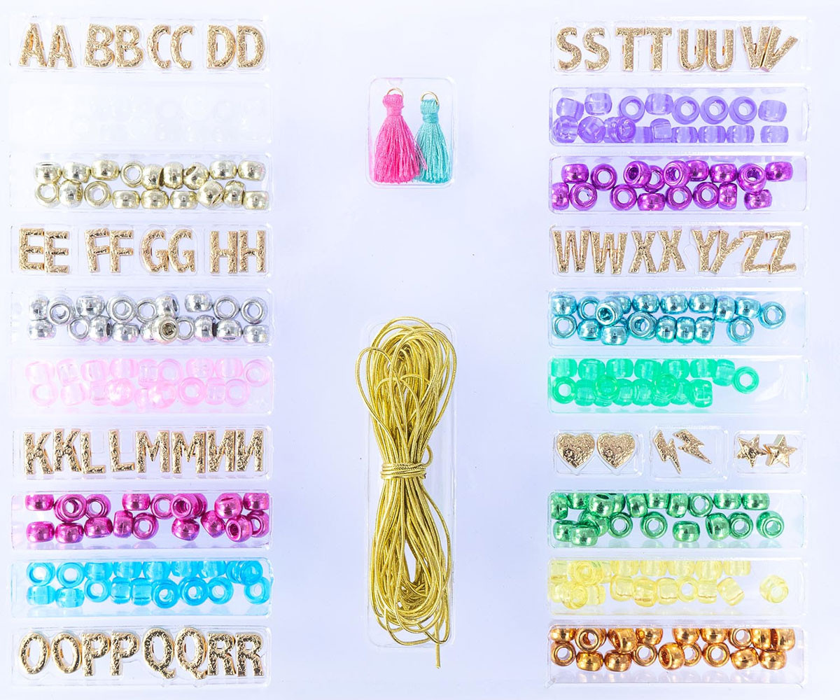 Голям комплект за всички, които обичат да създават свои собствени аксесоари. Чудесна идея за прекарване на свободното време чрез изработване на персонализирани колиета и гривни с любимите ви цветове и форми, с вашето мото или предпочитан надпис, както и възможност за използване на букви от истински златист метал.