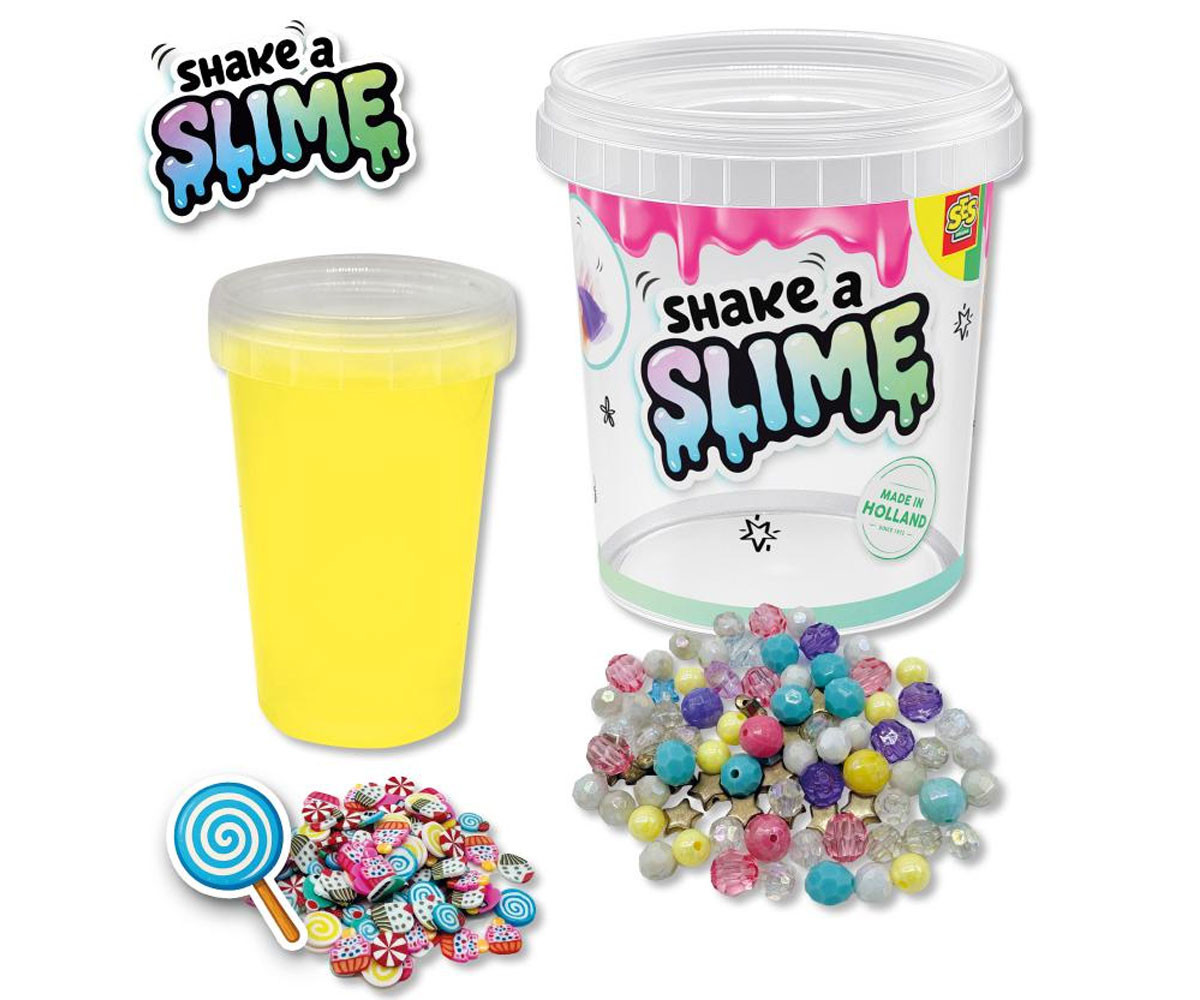 Смеси го, разклати го и се наслади на сладко забавление! Вземете шейкъра и създайте страхотни слайм комбинации със Shake a Slime Бонбони комплекта от SES Creative! С помощта на шейкъра и цветните мъниста ще направите най-забавните слайм миксове. Наблюдавайте как мънистата се движат в слайма и създават интересни ефекти. Тази версия Бонбони впечатлява с вкусни жълти цветове и сладки декорации - истинско сладко изживяване!