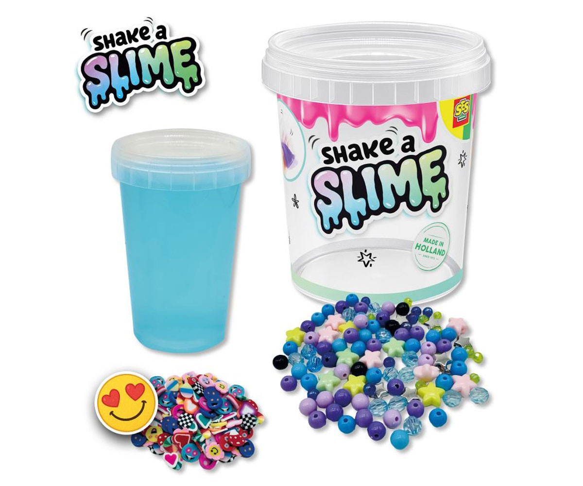 Смеси го, разклати го и превърни играта в истински празник! Вземете шейкъра и създайте страхотни слайм комбинации със Shake a Slime комплекта от SES Creative! С помощта на шейкъра и цветните мъниста ще направите най-забавните слайм миксове. Наблюдавайте как мънистата се движат в слайма и създават интересни ефекти. Тази версия Happy Explosion впечатлява с весели сини цветове и забавни декорации, които носят усмивки и настроение!
