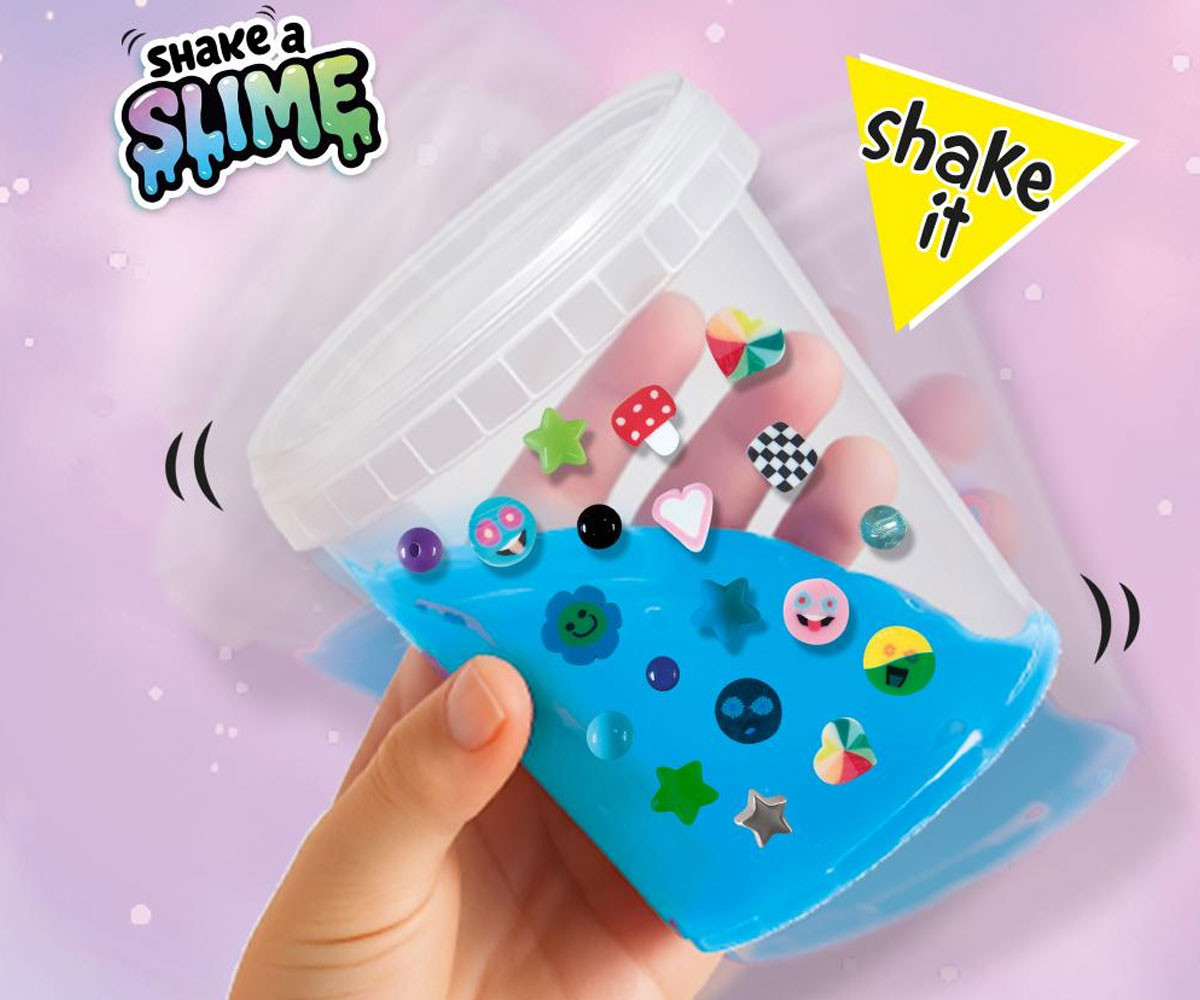Със специалната шейкър чаша мънистата се смесват лесно и ефектно. Добавете готовия слайм и декорациите, разклатете и създайте своя уникален „слайм експлозия от щастие“. С този комплект всяка игра се превръща в истинско парти!