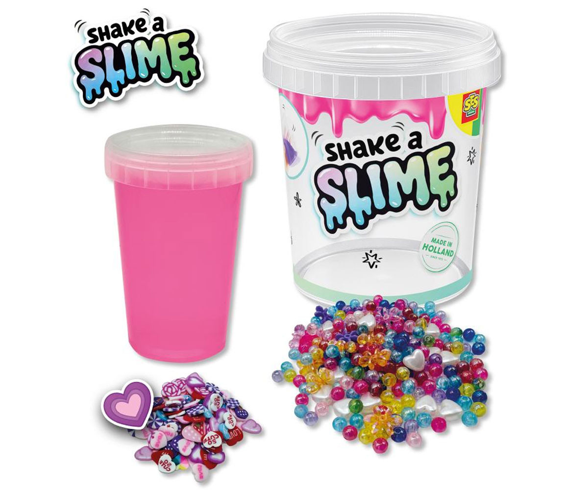 Смеси го, разклати го и остави любовта да заблести! Вземете шейкъра и създайте невероятни слайм комбинации със Shake a Slime комплекта от SES Creative! С помощта на шейкъра и цветните мъниста ще направите най-забавните и ефектни слайм миксове. Наблюдавайте как мънистата се движат в слайма и създават уникален ефект. Тази Любовна история впечатлява с нежни розови цветове и тематични декорации със сърца. Кой ще открадне вашето сърце?