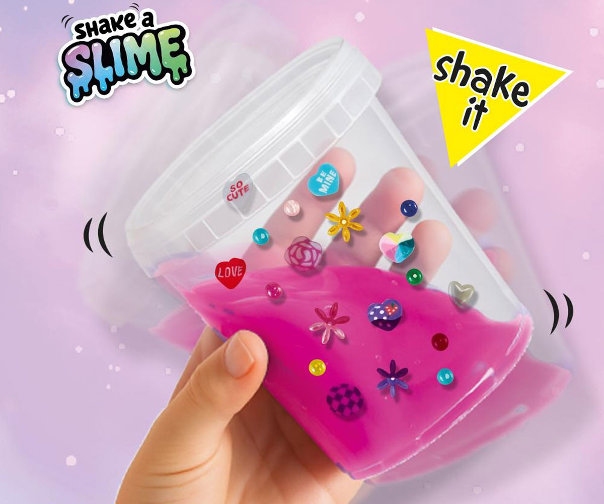 Със специалната шейкър чаша мънистата се смесват лесно и ефектно. Добавете готовия слайм и декорациите, разклатете и създайте своя уникален „любовен слайм“. Този комплект ще спечели сърцето на всяко дете!