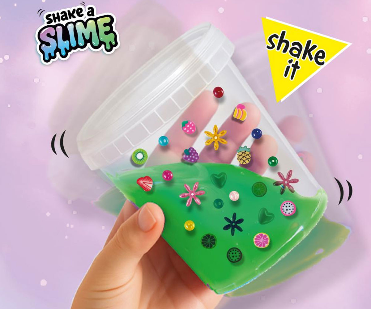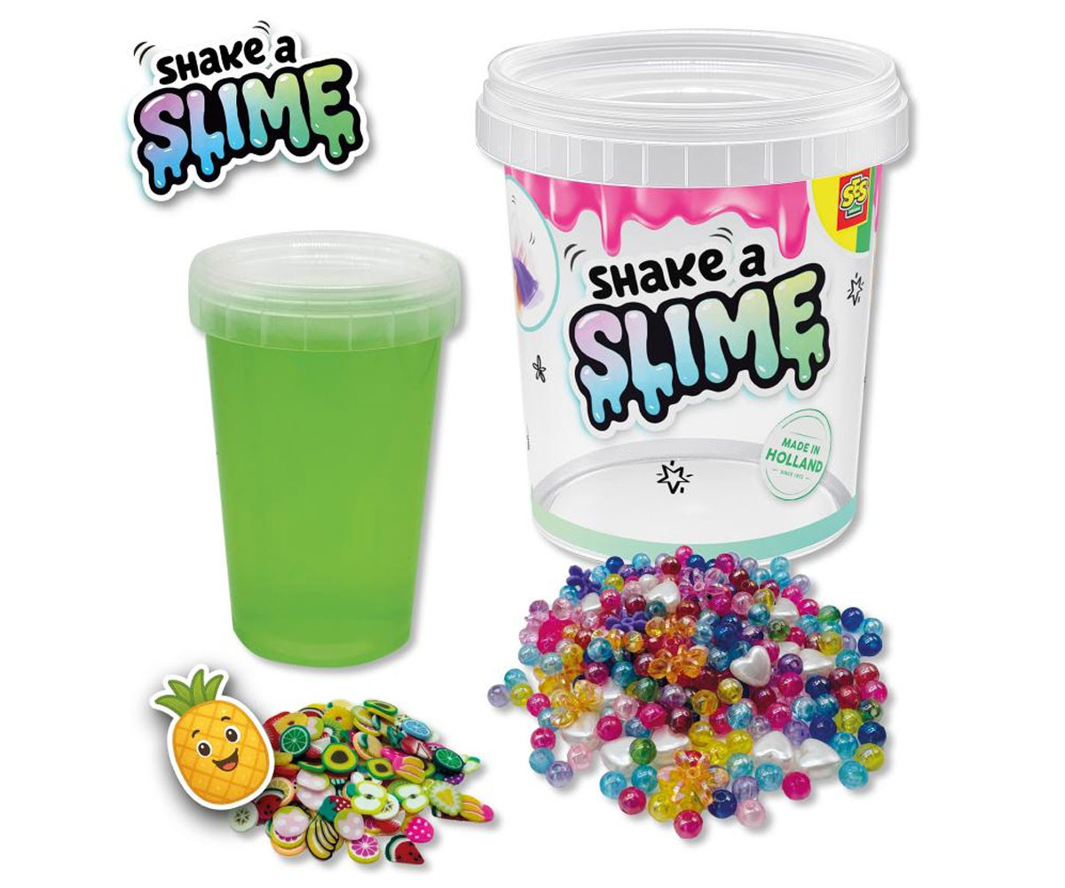 Смеси го, разклати го и се забавлявай с плодово настроение! Вземете шейкъра и създайте страхотни слайм комбинации със Shake a Slime комплекта от SES Creative! С помощта на шейкъра и цветните мъниста ще направите най-забавните миксове. Наблюдавайте как мънистата се движат в слайма и създават впечатляващи ефекти. Тази версия Слайм плодове впечатлява със свежи зелени цветове и плодови декорации - истинско плодово парти!