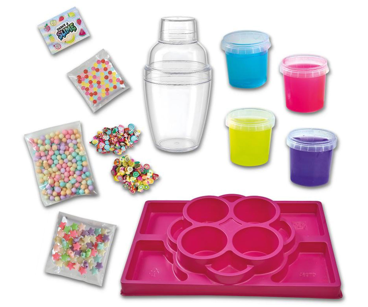 Смесването на слайм никога не е било толкова забавно! С комплекта Желе с мъниста за смесване: Студио за смесване децата могат да създават най-яките „желе коктейли“ и да се почувстват като истински слайм шеф-готвачи! Изберете любимите си цветове слайм, добавете интересни декорации от отделенията и… Разклати, Разклати, Разклати в супер готиния шейкър! Искате нова комбинация? Използвайте шейкъра, за да отделите декорациите и започнете отново. Смесвайте, разклащайте и създавайте безкрайно!