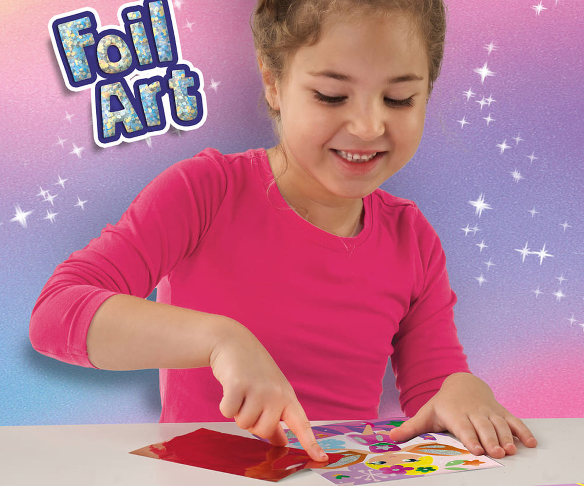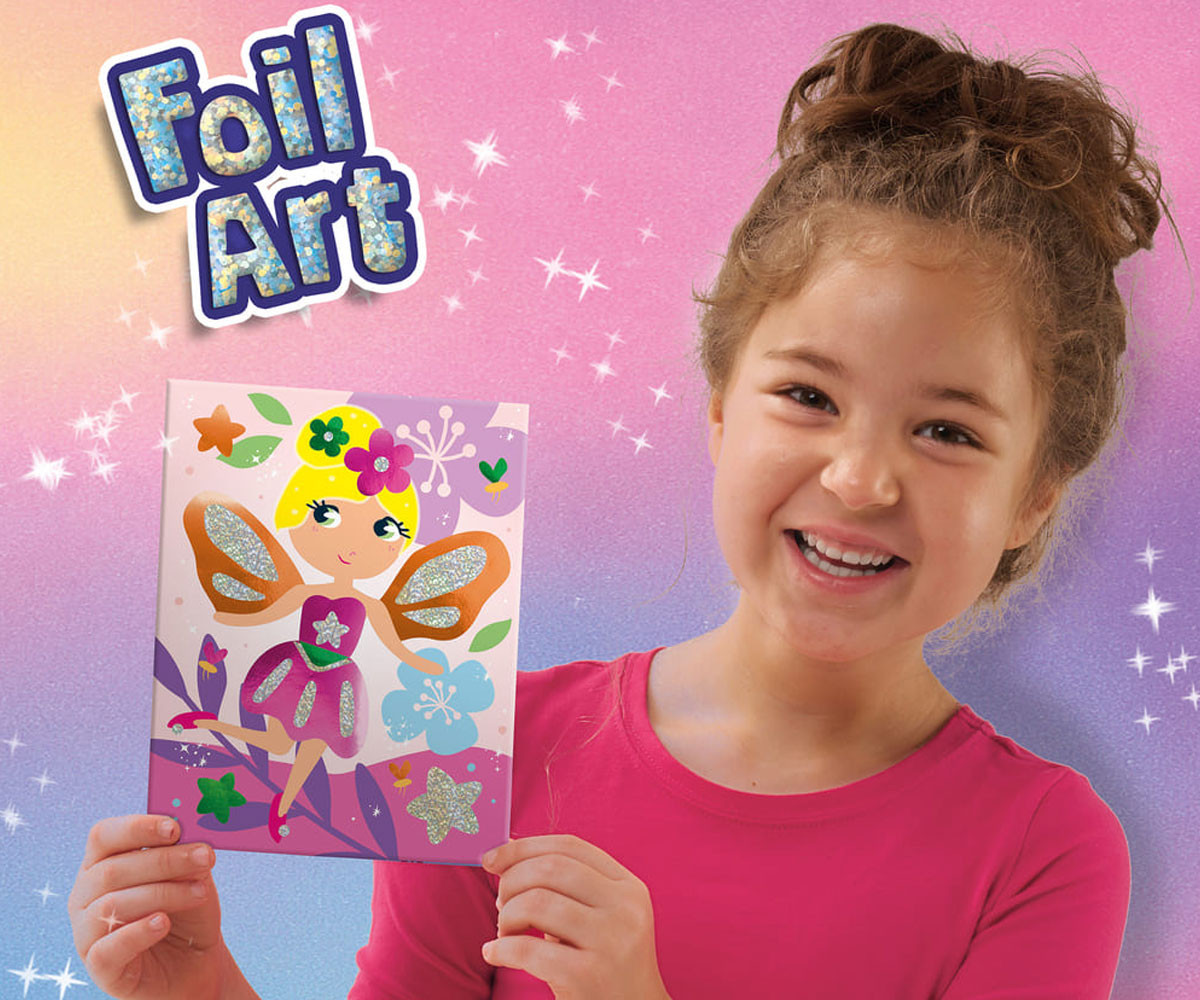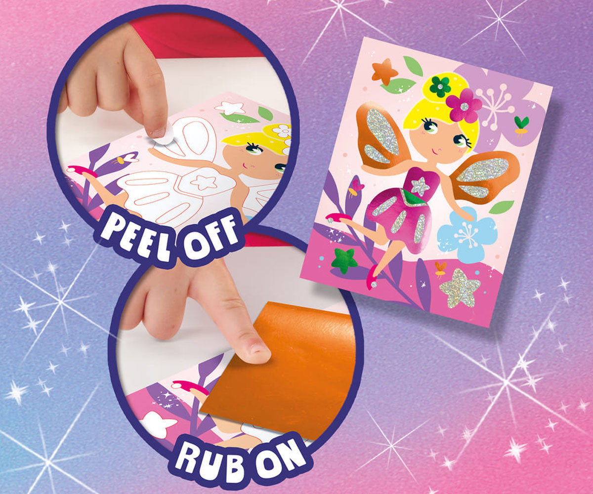 Независимо дали е дъждовен следобед или специален творчески момент, с Изкуство с фолио: Феи лесно ще създадете нещо красиво. Процесът е лесен и много забавен - отлепяне, поставяне и разтриване. Блестящото фолио придава магия на всяка картина и създава резултати, които децата с радост показват.