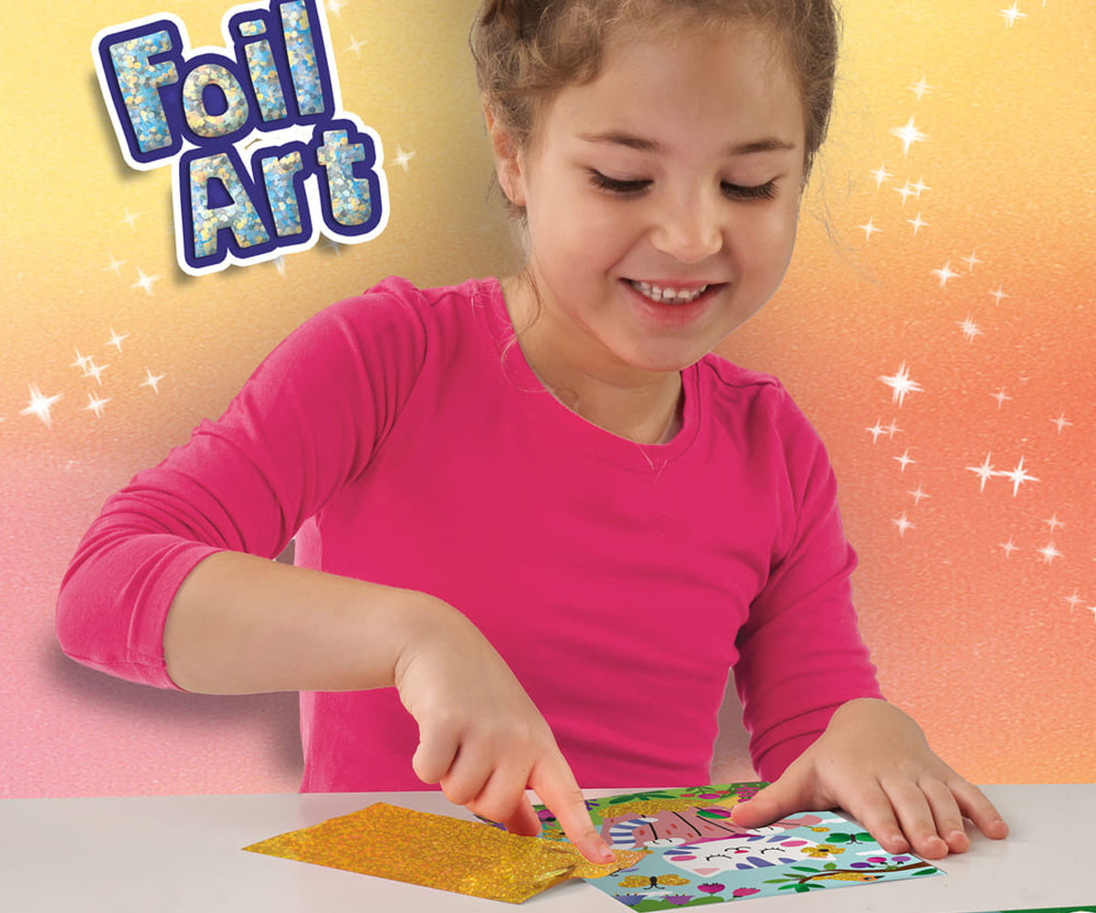 Изкуство с фолио: Чудеса от гората носи усещане за природа и магия във всяко творческо занимание. Лесният процес на отлепяне, поставяне и разтриване е успокояващ и забавен, а блестящото фолио прави всяка картина специална. Идеален за творчески следобеди или като красив подарък за малки любители на изкуството.