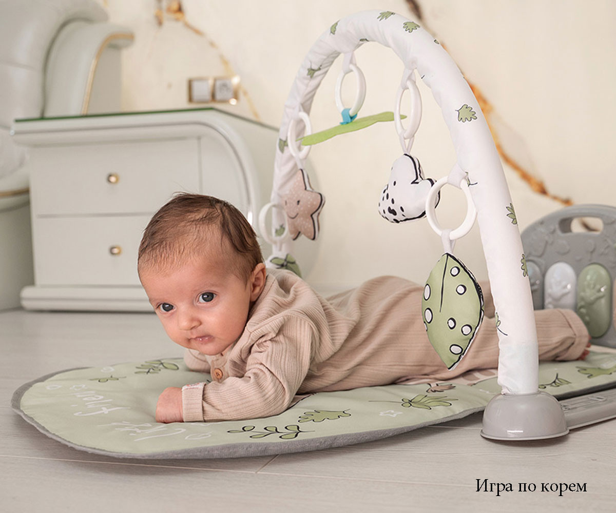- Лежане и игра по корем - Свалете арката и оставете бебето да си играе с играчките. Чрез играта се подобрява развитието на гръбначния стълб и врата;