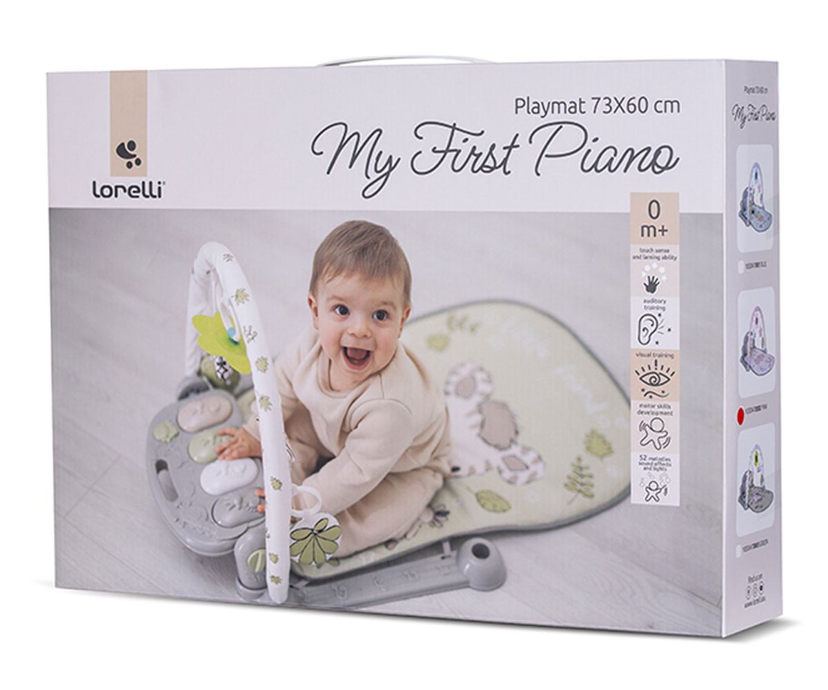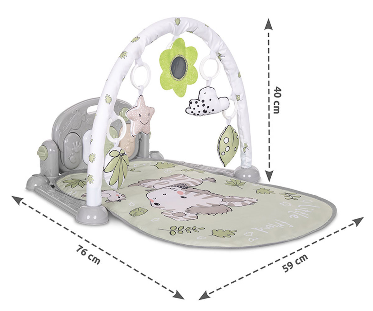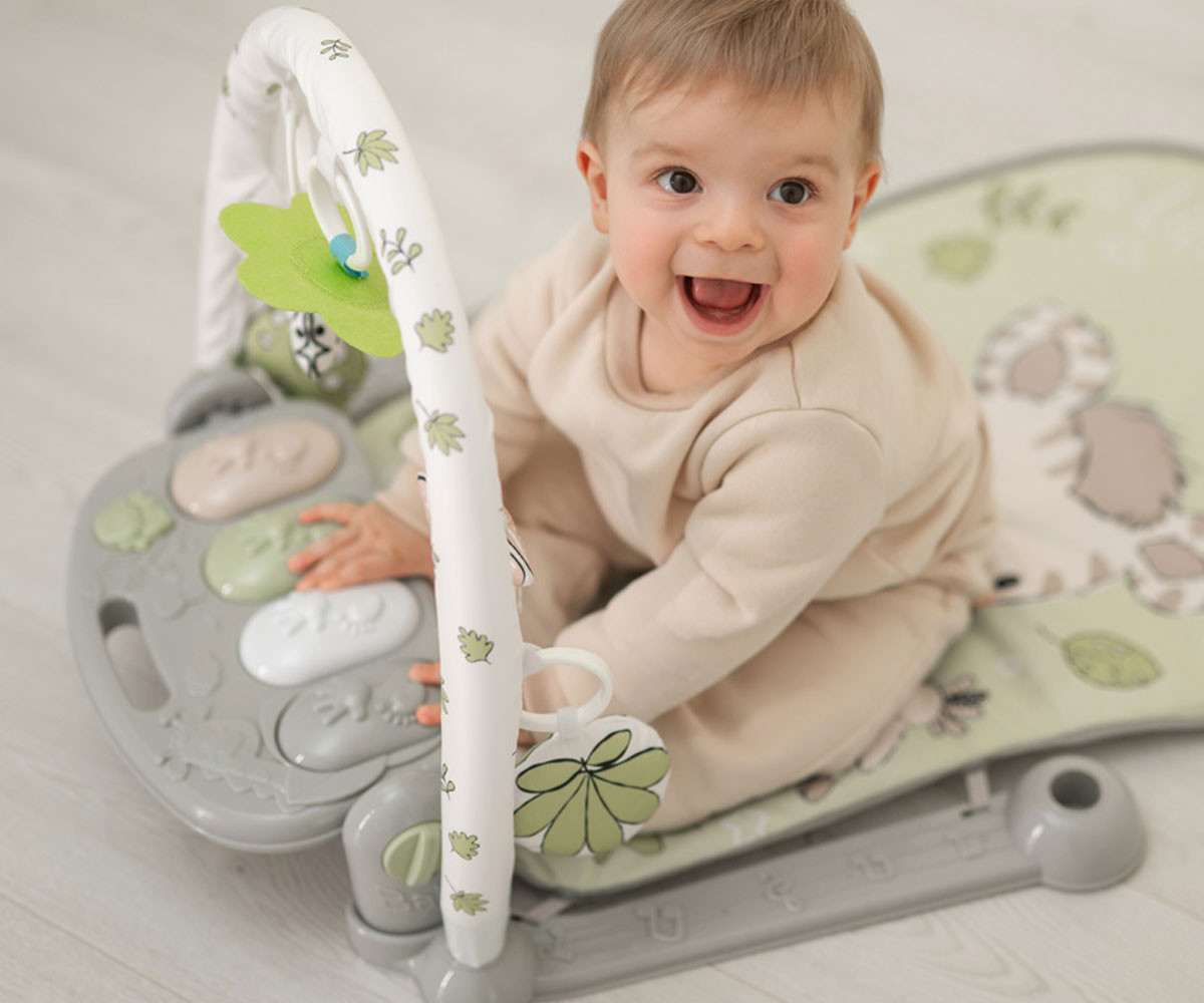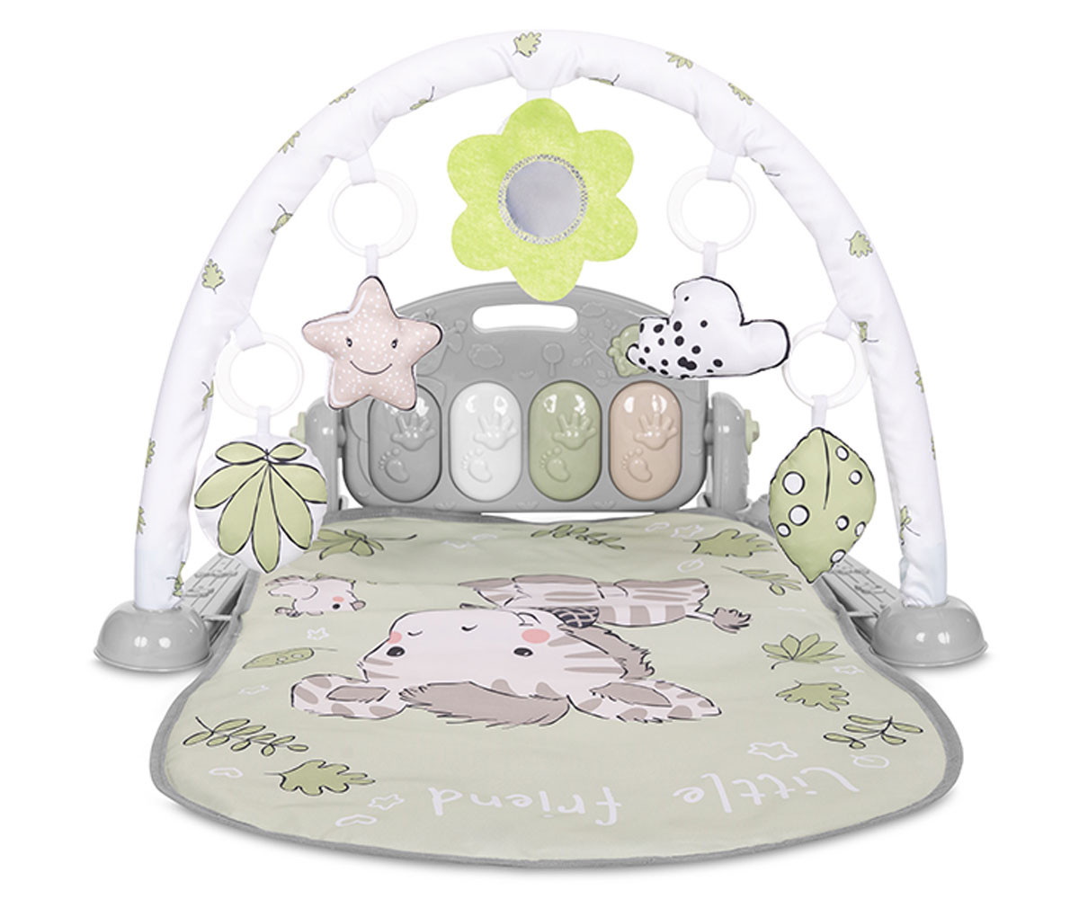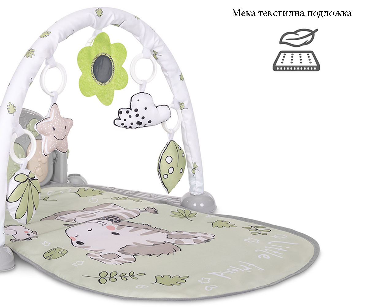 - Лежане и игра - Закачените играчки на арката првличат вниманието на бебето. Бебето развива зрението и движението си. Ритането по пианото произвежда музика, Това го насърчава да играе и да практикура движенията на краката;