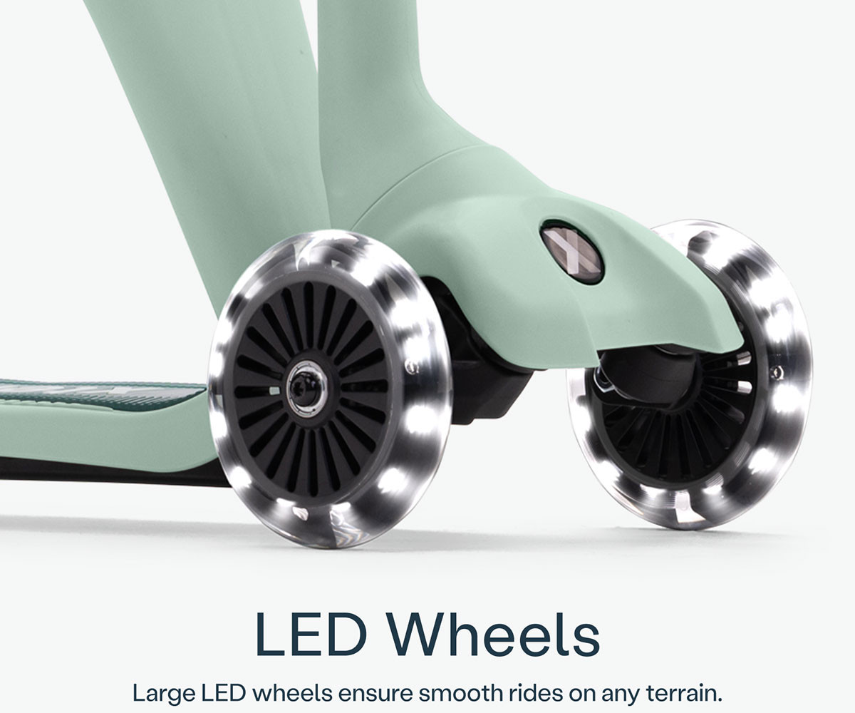 - LED светещи колела – осигуряват видимост, безопасност и допълнително забавление;