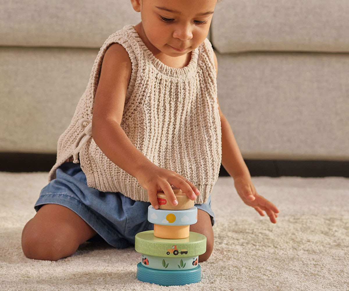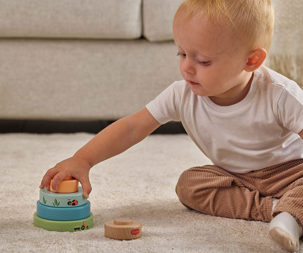 Tiny Love Farmers Funday Wooden Stacking Tower съчетава устойчив дизайн, образователна стойност и свобода на игра, което я прави ценен помощник в развитието на детето.