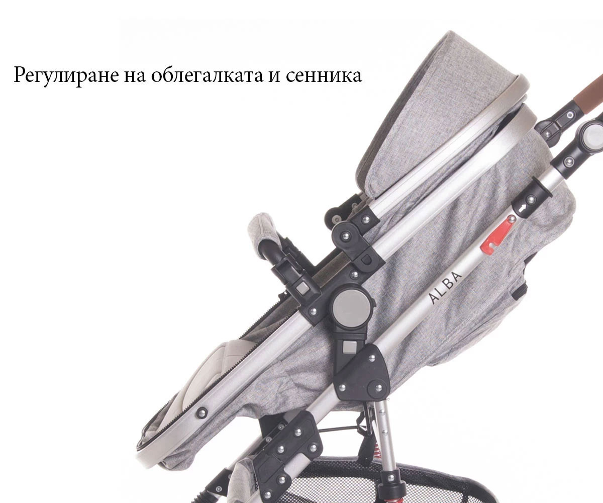 Комбинирана бебешка количка с трансформираща седалка до 15кг Lorelli Alba Premium Set, Opaline Grey