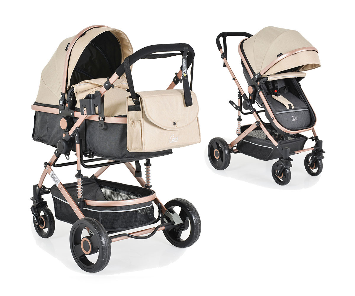 Комбинирана бебешка количка с трансформираща седалка до 15 кг. Moni Ciara, бежовa с черно