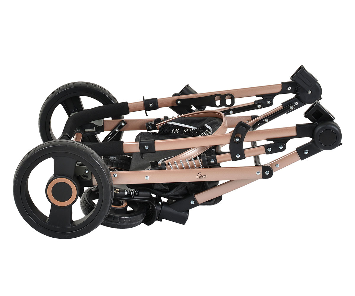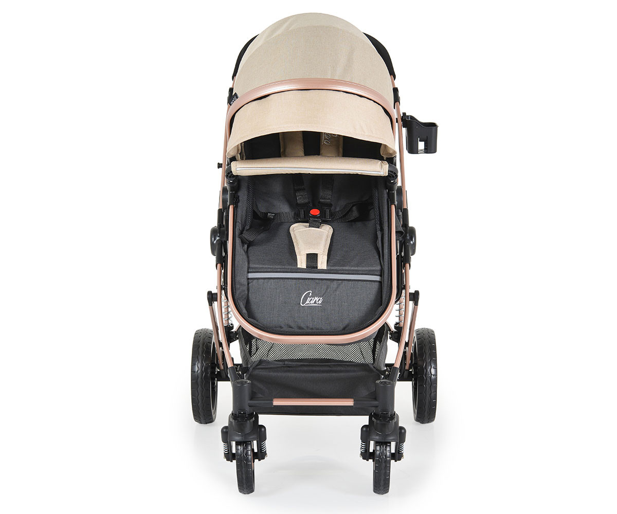 Стилна, модерна, функционална и изключително маневрена – комбинираната детска количка Ciara е страхотен избор за ежедневни разходки. Тя е подходяща за бебета и малки деца до 3-годишна възраст, с тегло до 15 килограма. Нейната регулираща се седалка позволява да изберете позицията, в която Вашето съкровище ще се чувства най-удобно. Тя лесно се трансформира в кош за новородено. Количката разполага и с голям сенник, мрежа против насекоми, както и голям кош, в който може да съхранявате своите покупки до 2 килограма. Изключително лесното сгъване и разгъване правят количката предпочитана от много родители.
