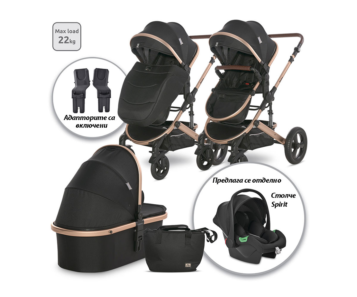 Комбинирана количка с адаптори и с реверсивна седалка до 22кг Lorelli Boston, Black
