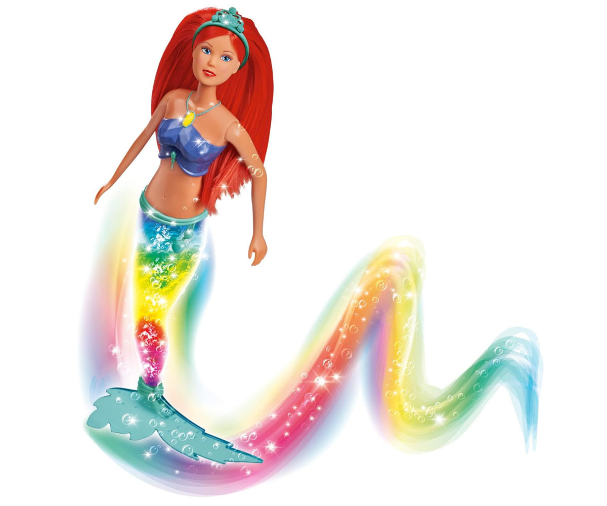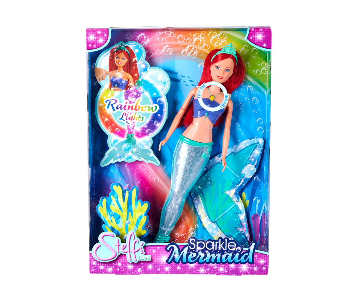 Потопете се в магическия свят на русалките с куклата Steffi LOVE Mermaid, която омагьосва с бляскавата си опашка в цветовете на дъгата! Перфектен избор за игра във водата и извън нея.