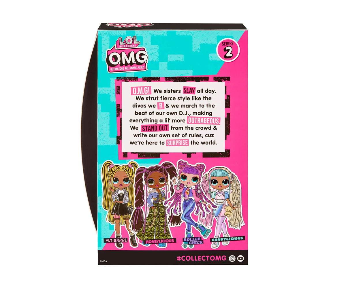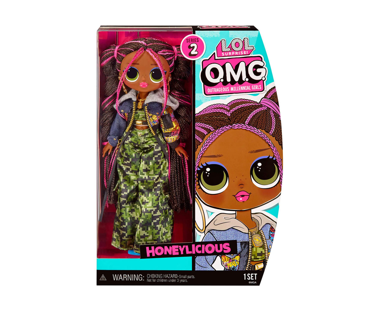 Миксът ми е толкова летящ, че трябва да го поставя в самолетен режим – Honeylicious. Оригиналните любими на феновете модни кукли LOL Surprise OMG се завръщат: кажете здравей на Honeylicious! Известна със своя хит сингъл номер 1 „Crew Remix“ и директно от турнето So Extra Tour, тя е готова да отдели малко време и да се отпусне със своите BFF. Honeylicious обича да експериментира с нови звуци, за да създаде идеалния микс за слушане, докато излиза с приятели и работи върху своето изкуство. Тя има големи цели и като един от най-талантливите музикални продуценти наоколо, пригответе се да увеличите звука и да танцувате! Разопаковайте това повторно издание на Honeylicious в ограничено издание, показващо нейните зашеметяващи черти, красива коса и нейния собствен зашеметяващ глем стил. Съберете всички 4 преиздадени кукли LOL Surprise OMG: Candylicious, Roller Chick, Alt Grrrl и Honeylicious.