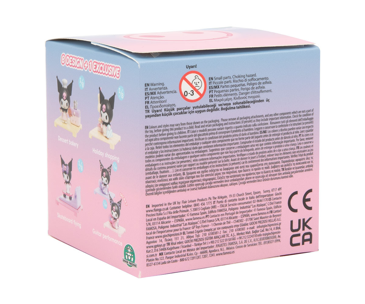 Открий Куроми – един от най-обичаните герои! Колекцията включва 8 уникални модела и 1 рядък. Всеки комплект съдържа фигурка Куроми и нейната кутийка/къщичка, която е лесна за сглобяване и може да се подрежда за впечатляваща изложба. Фигурката Куроми се закрепва стабилно върху основата на кубчето-къща. Създай своя собствен свят на Kuromi още днес!