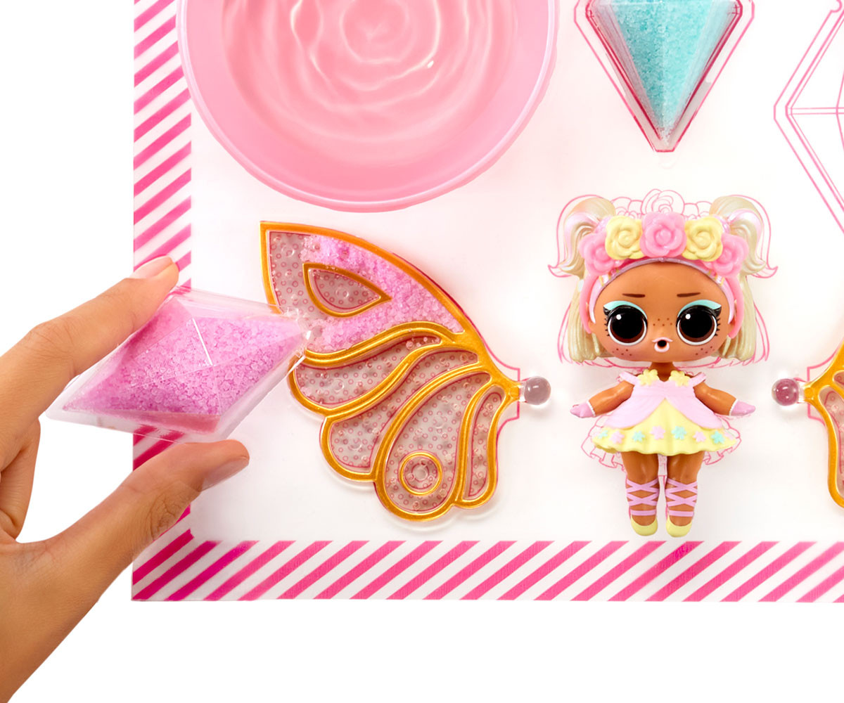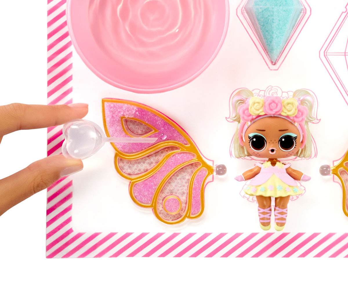 Очаква те магическо забавление с феи! Наблюдавай как въображението на твоето дете полита с LOL Surprise Fairies Tots - перфектната комбинация от вълнуващо разопаковане и креативна игра! Този омагьосващ колекционерски комплект вдъхва живот на света на феите с очарователен дизайн и безкрайни възможности за забавление.