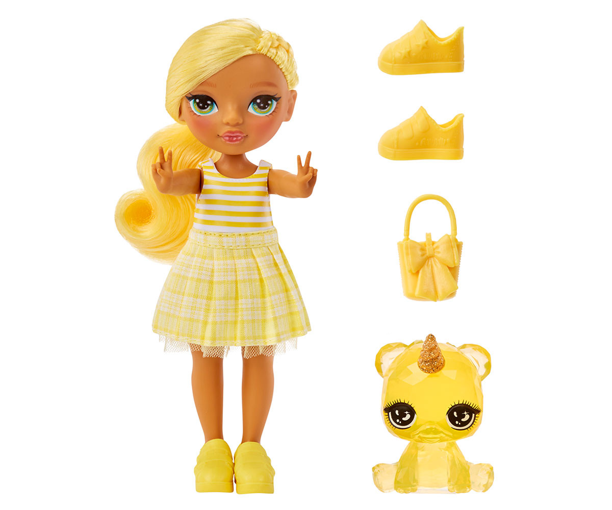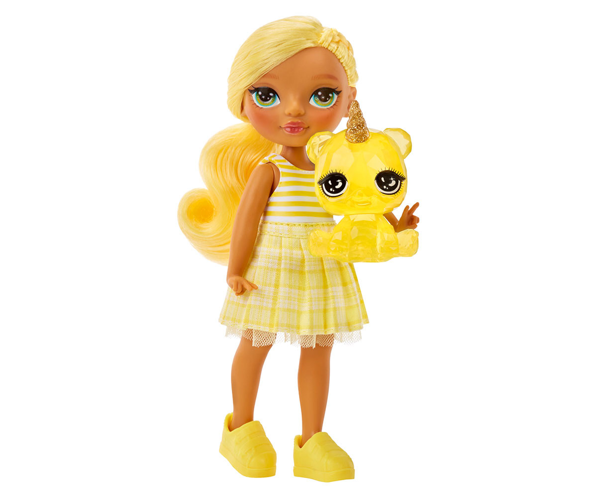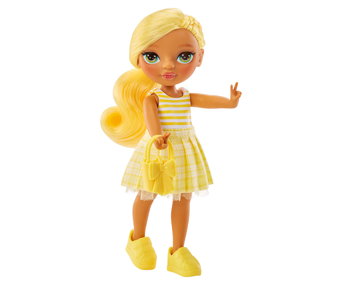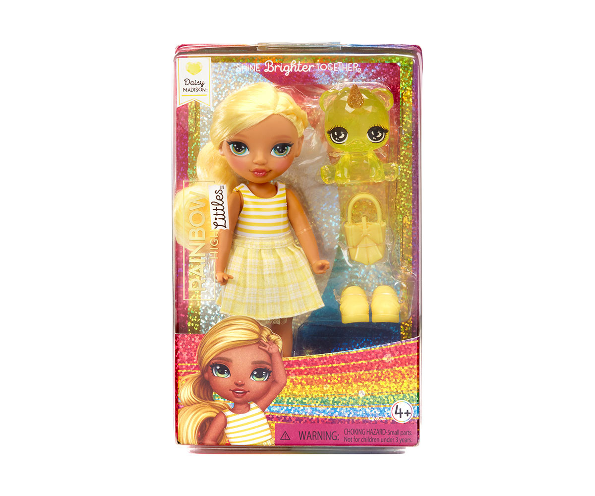 Няма по-добър приятел от малката сестра! Представяме Rainbow High Littles – малките сестри на любимите ви кукли Rainbow High. Можете да създавате истории с малките сестри на любимите си кукли! Представяме малката сестра на Съни Мадисън – Дейзи. Дейзи винаги е гледала с възхищение на голямата си сестра. Затова не е изненада, че тя прилича на нея по толкова много начини. Дейзи е безстрашна и вярна приятелка. Дейзи Мадисън има свой уникален стил. Тя е облечена в жълта рокля с каре пола и райе топ. В комплект с нея идват и жълти обувки и чанта. Тя има очарователно лице и дълга коса вързана на опашка.