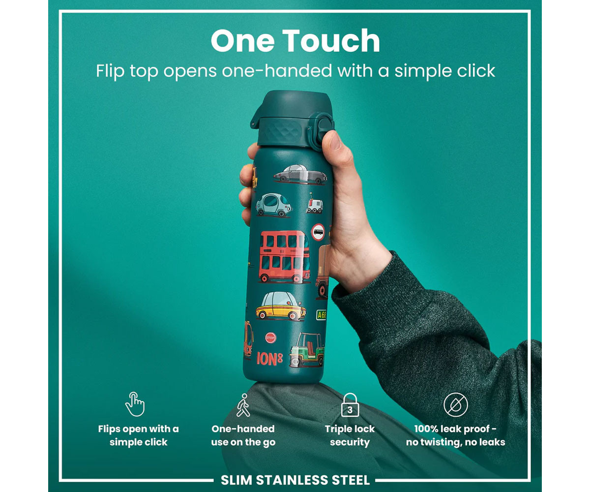 - Име: Метална бутилка за вода Ion8 Print, 600 мл, Automobiles