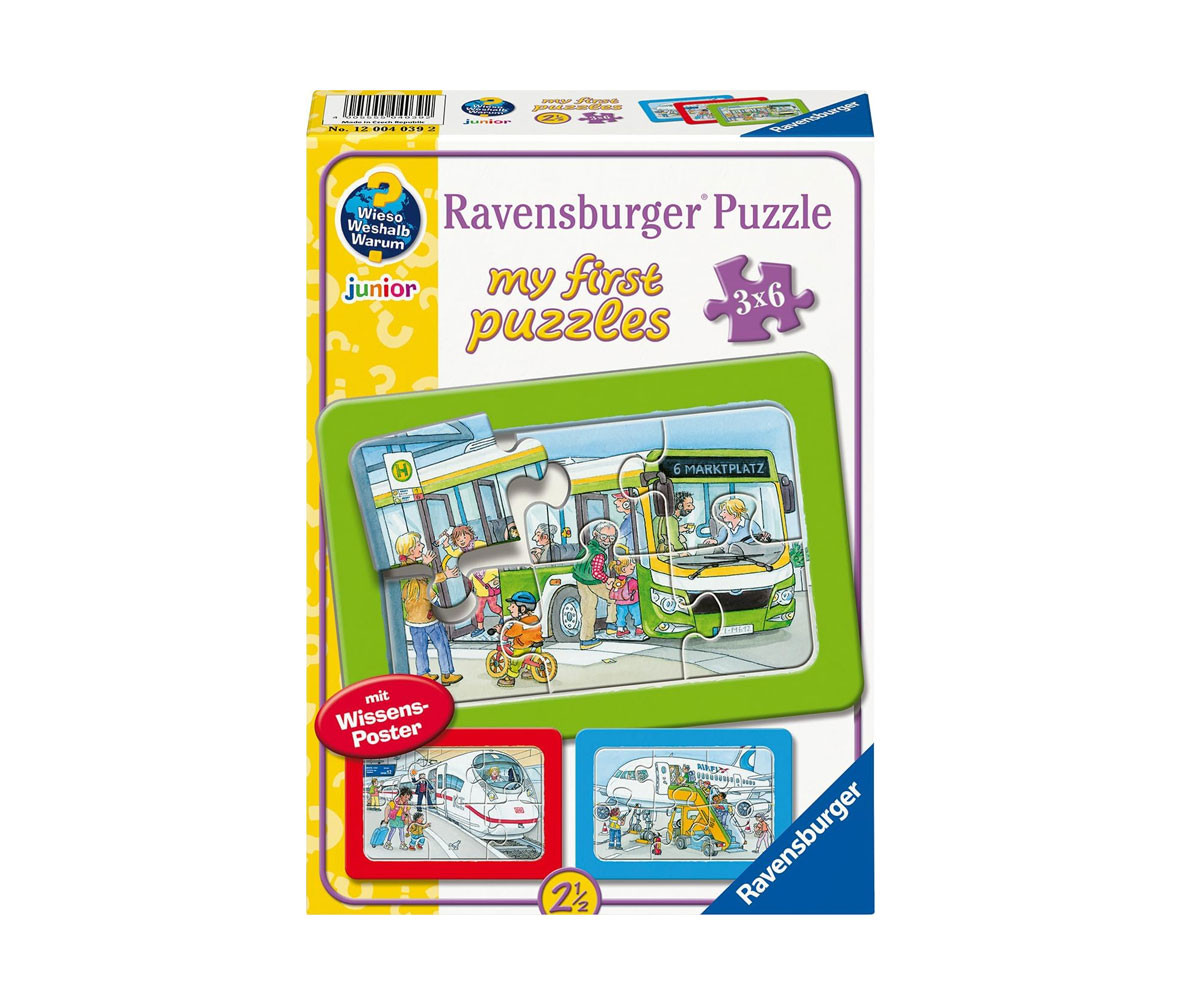- Name: Ravensburger 12004039 - My First Puzzle Wieso? Weshalb? Warum? Unterwegs mit Bus, Bahn und Flugzeug 3x6 Pieces Puzzle