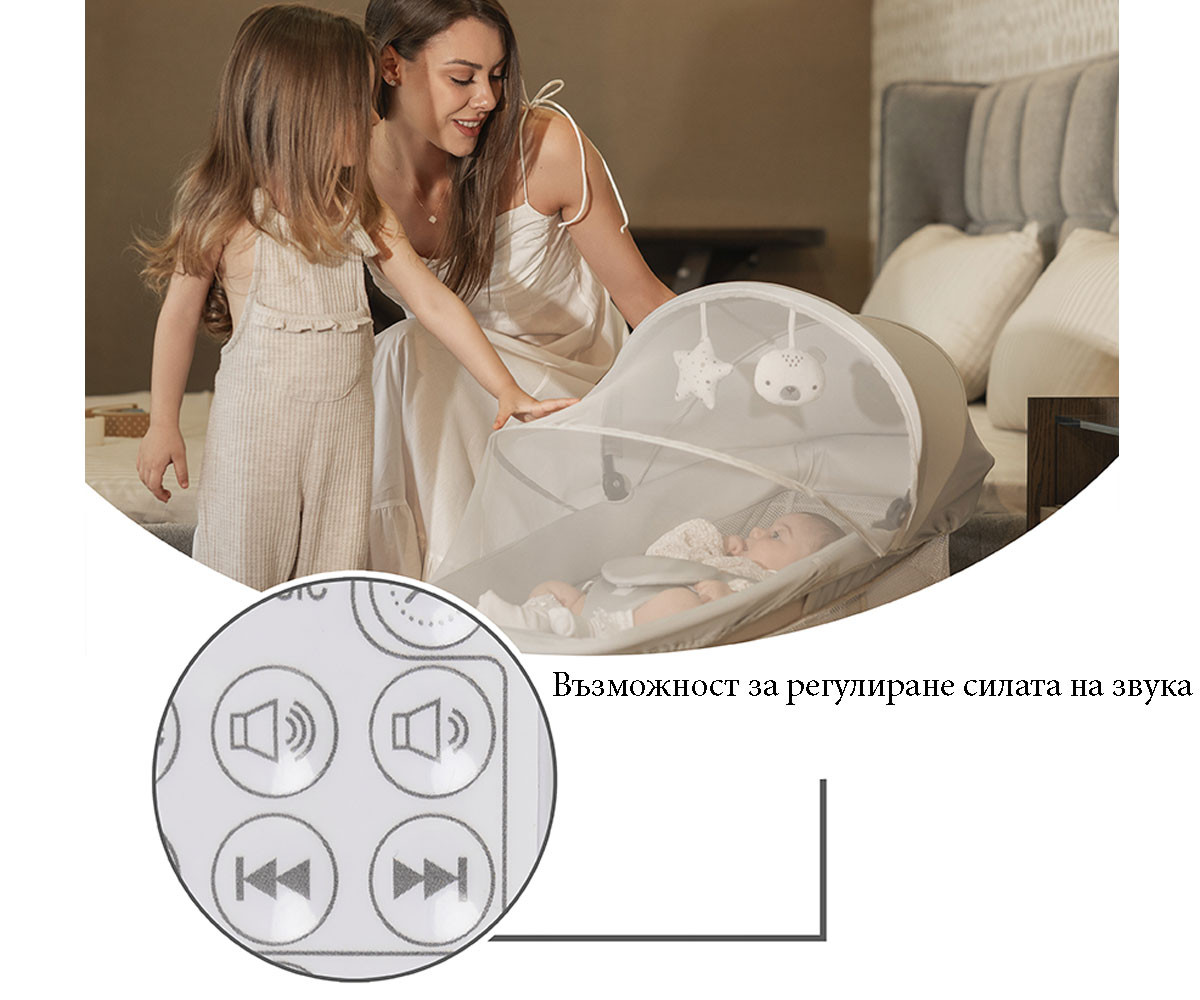 Lorelli - Електрически музикален шезлонг-люлка Siena, light grey