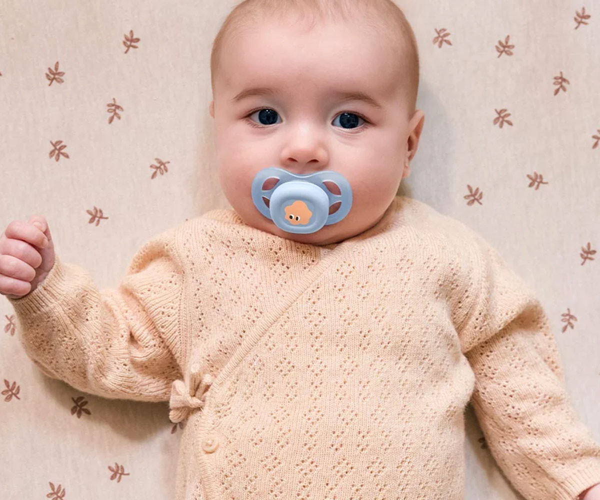 - Заоблени ръбове на основата на залъгалката Авент, за намаляване натиска върху кожата на бебето по време на сучене;