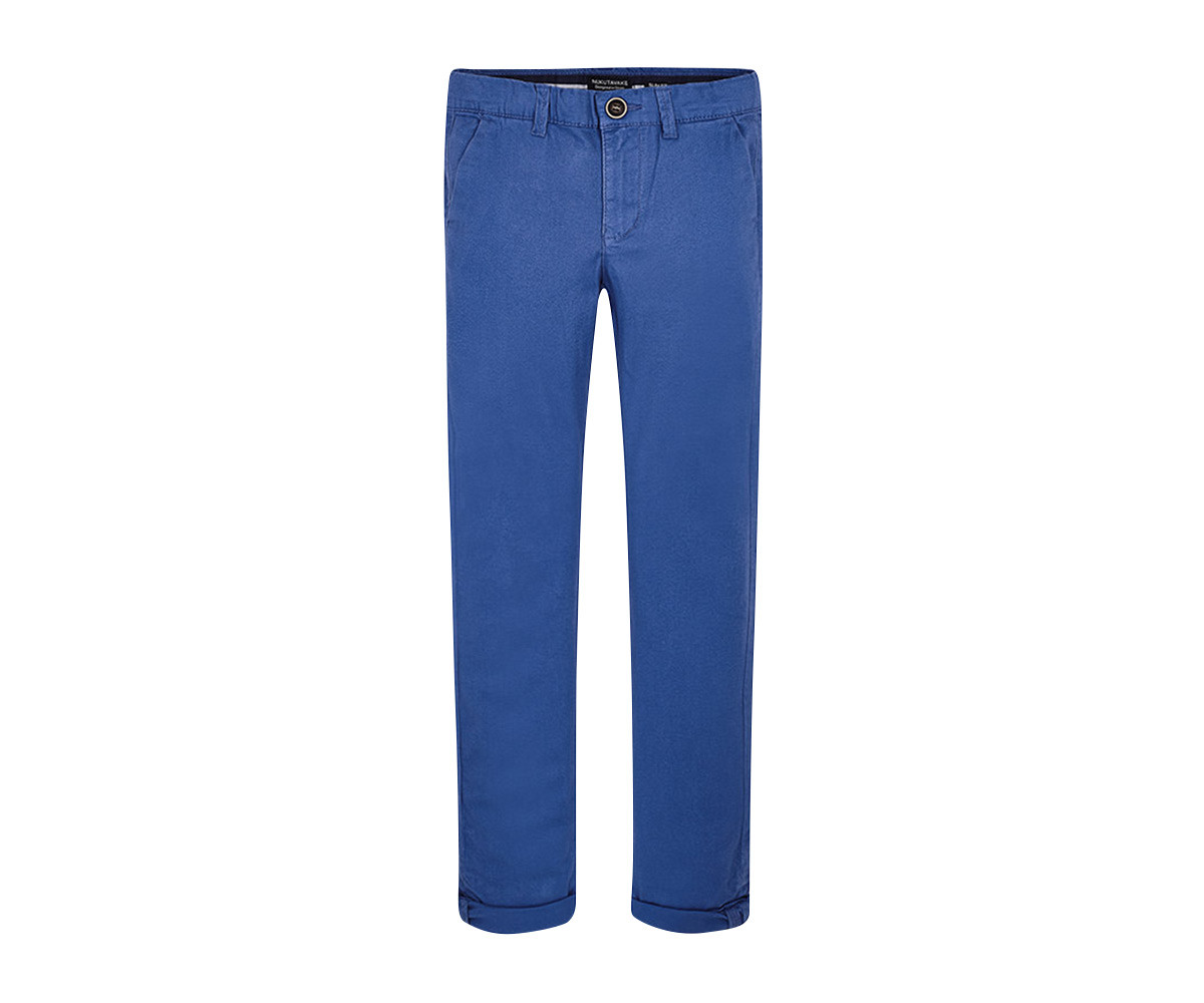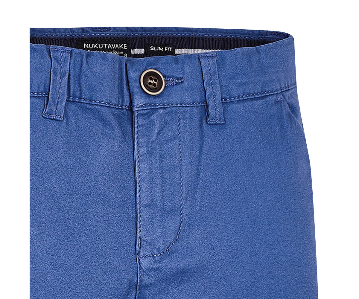 Елегантни дълги панталони за момче, направени от памучна ликра. Това, което откроява този модел е леко вталената му кройка - без да са твърде тесни, тези панталони прилягат на фигурата и допълват модерната визия. В допълнение има и някои отличителни детайли с образа на Nukutavake, като копчетата и задните джобове например. С регулируема талия.