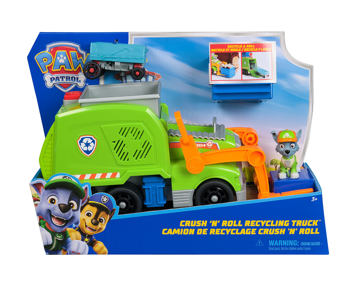 - Name: Spin Master 6071248 - PAW Patrol: Crush N’ Roll Recycling Truck with Rocky Action Figure & Transforming Compacted Trash Vehicle