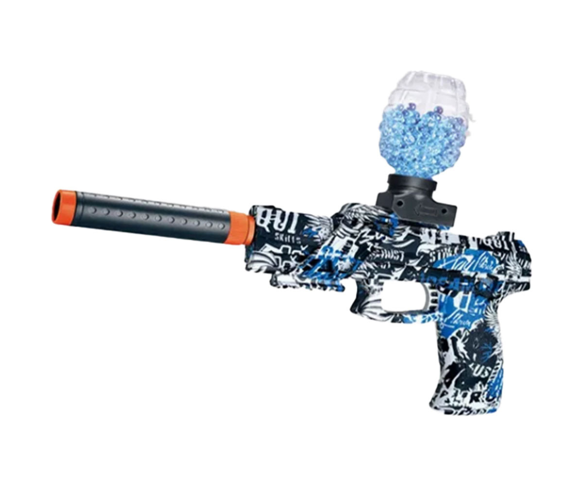 Детски Бластер с Гел Топчета – Забавлението започва сега! Потопете се в света на екшън игрите с този детски бластер с гел топчета – перфектният подарък за малки авантюристи! Този бластер съчетава безопасност, забавление и динамично движение, като предоставя часове наред активна игра на открито или в подходяща закрита среда. Комплект с предпазни очила – за максимална защита по време на игра. Детско оръжие с гел топчета! За да подготвите гел топчетата за изстрелване трябва да ги накиснете в халдка вода за 3-4 часа. Те ще набъбнат до 7-8 мм. Бластерът работи с батерия, която е включена и има включен кабел за презареждане на батерията.