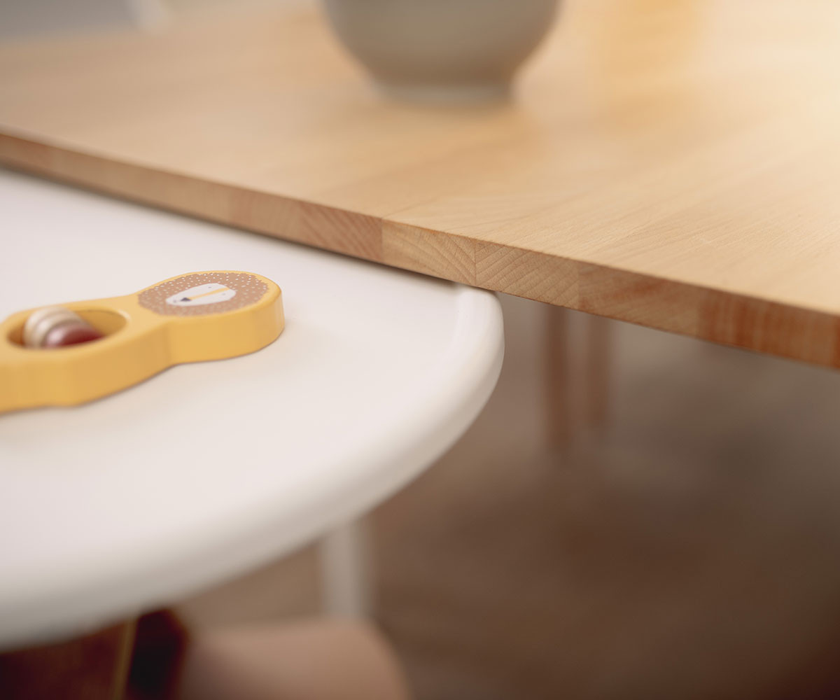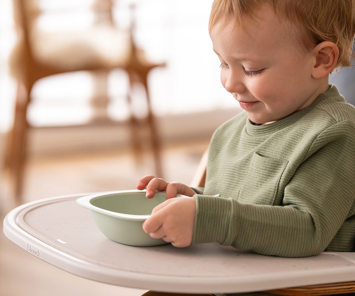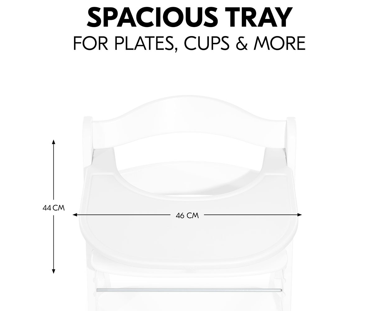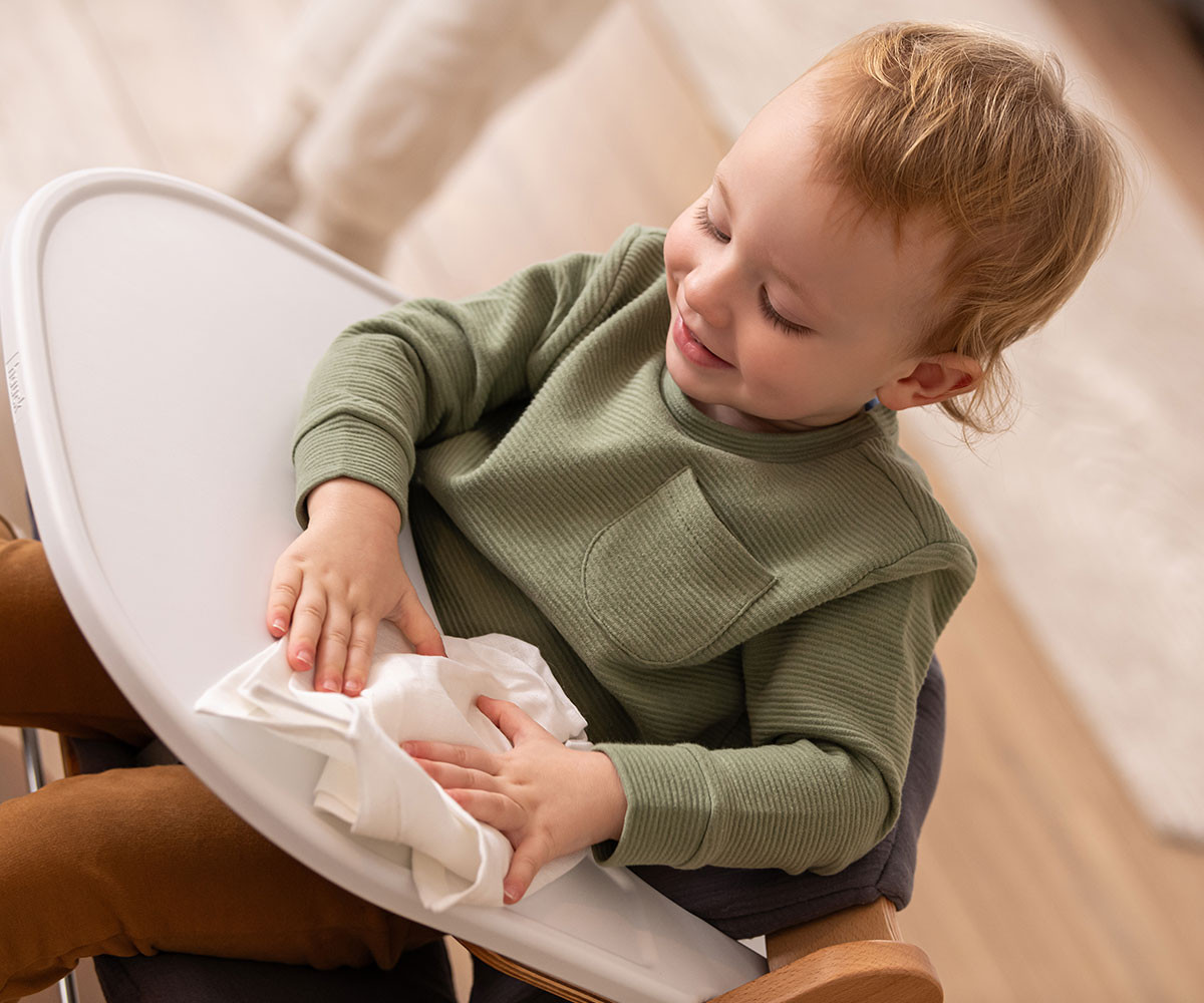 Alpha Click Tray - Практична и устойчива табла за Alpha+. Устойчива табла за столче за хранене от 6 месеца нататък. Подносът за столче за хранене е направен от материал, сертифициран по Глобален рециклиран стандарт (GRS), който означава ясни социални, екологични и правила за химическо производство. Може лесно да се закрепи върху вашето столче за хранене Alpha+, позволявайки на детето ви да яде и да играе на собствена маса от 6 до 36 месеца. Независимост, безопасност и комфорт за вашето дете. Благодарение на това, че таблата е съвместима с 5-точковия колан и предпазната лента на столчето за хранене, вашето дете е добре обезопасено в Alpha+. Подносът предлага достатъчно място за чинии, чаши и играчки. Независимо дали е във всекидневната, кухнята или банята, благодарение на таблата на вашия Alpha+, вашето дете може да седи винаги близо до вас. Издръжлив, лесен за поддръжка аксесоар за столче за хранене. Благодарение на здравия материал, таблата може да се използва дълго време. Повдигнатият ръб предпазва играчките от падане или разливане на напитките на пода. Гладката повърхност може лесно да се избърше с кърпа и почистващи продукти. Можете да добавите и Подложка за масичка Alpha+ (предалага се отделно, можете да я закупите тук).
