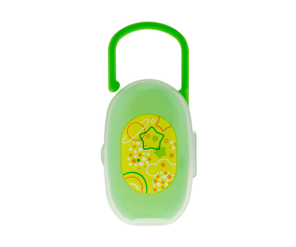Кутийката Chicco е практично решение за съхранение и защита на залъгалка, като я предпазва от замърсяване. Тя разполага с удобен клипс, който позволява лесно закрепване към чанта, бебешка количка или детско легло, така че залъгалката винаги да бъдр под ръка. Кутийката е изработена от безопасна пластмаса, без съдържание на Бисфенол А (BPA Free). Почистването е лесно - може да се стерилизира в стерилизатор или да се измие с топла вода.