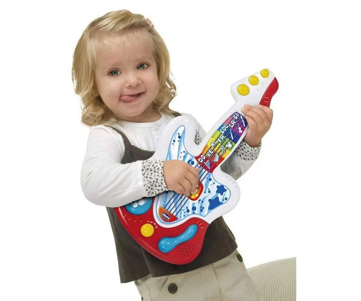 Музикалната китара Chicco превръща всяко дете в малък рок изпълнител и прави ученето чрез игра още по-забавно.