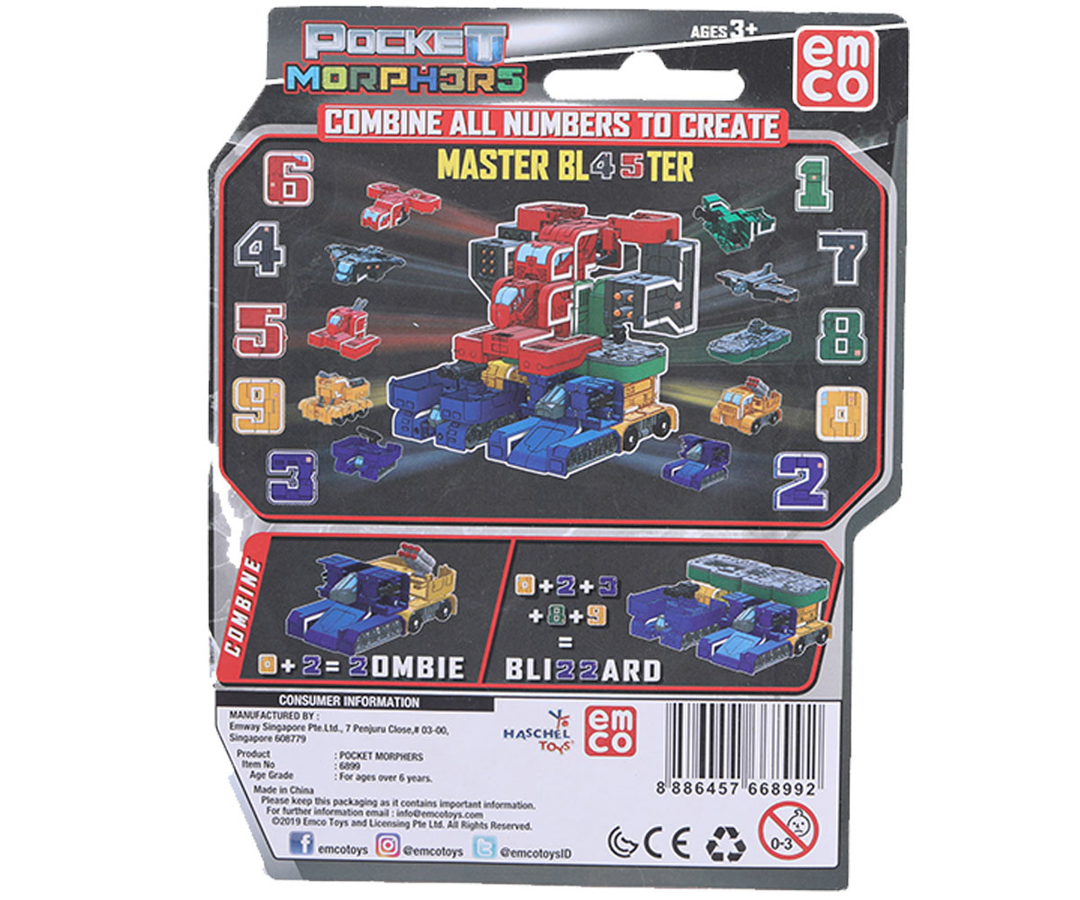Джобен трансформър Pocket Morphers - цифрите от 0 до 9, които се трансформират в различни бойни машини. От 10-те цифри може да се сглоби и роботът Master Blaster.