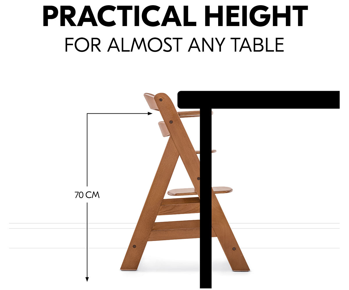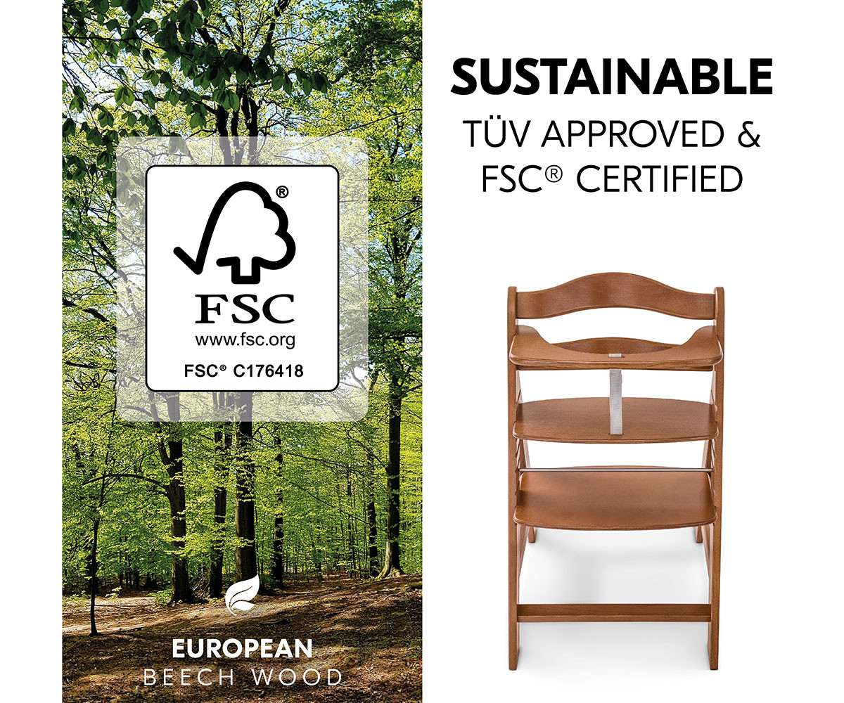 Столчето за хранене Alpha+ е произведено от европейски бук от FSC® сертифицирани гори, където се залага на устойчиво и екологично горско стопанство с грижа за природата и животинските видове. Благодарение на регулируемите седалка и поставка за крачета, столчето се адаптира към растежа на вашето дете. Здравата и стабилна конструкция позволява използване до максимално натоварване от 90 кг, което го превръща в дългосрочно решение за цялото семейство.
