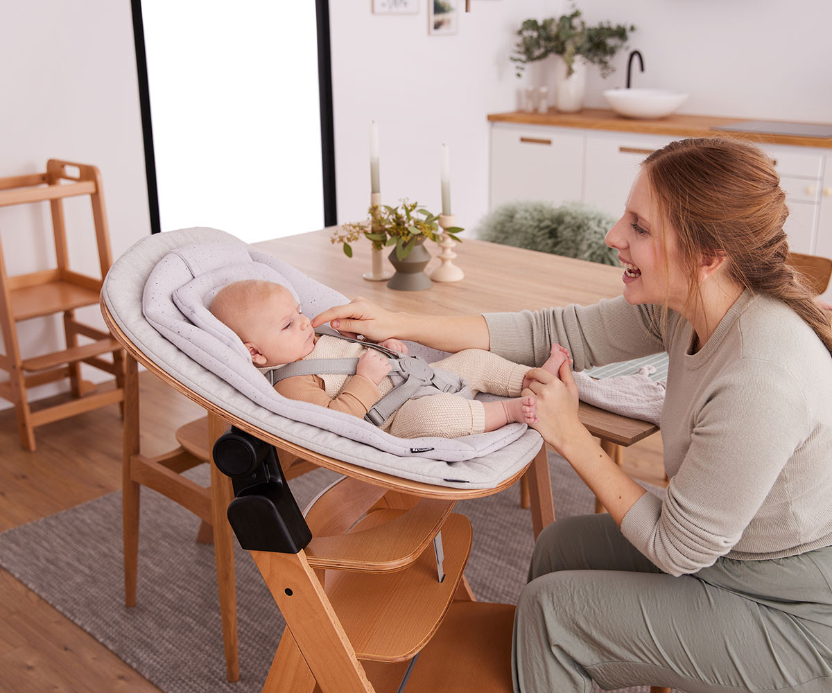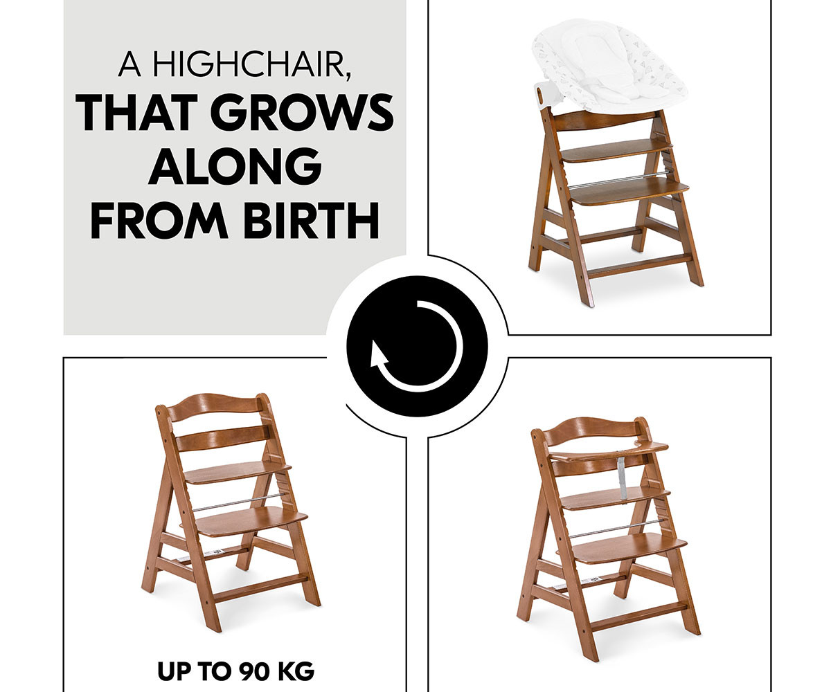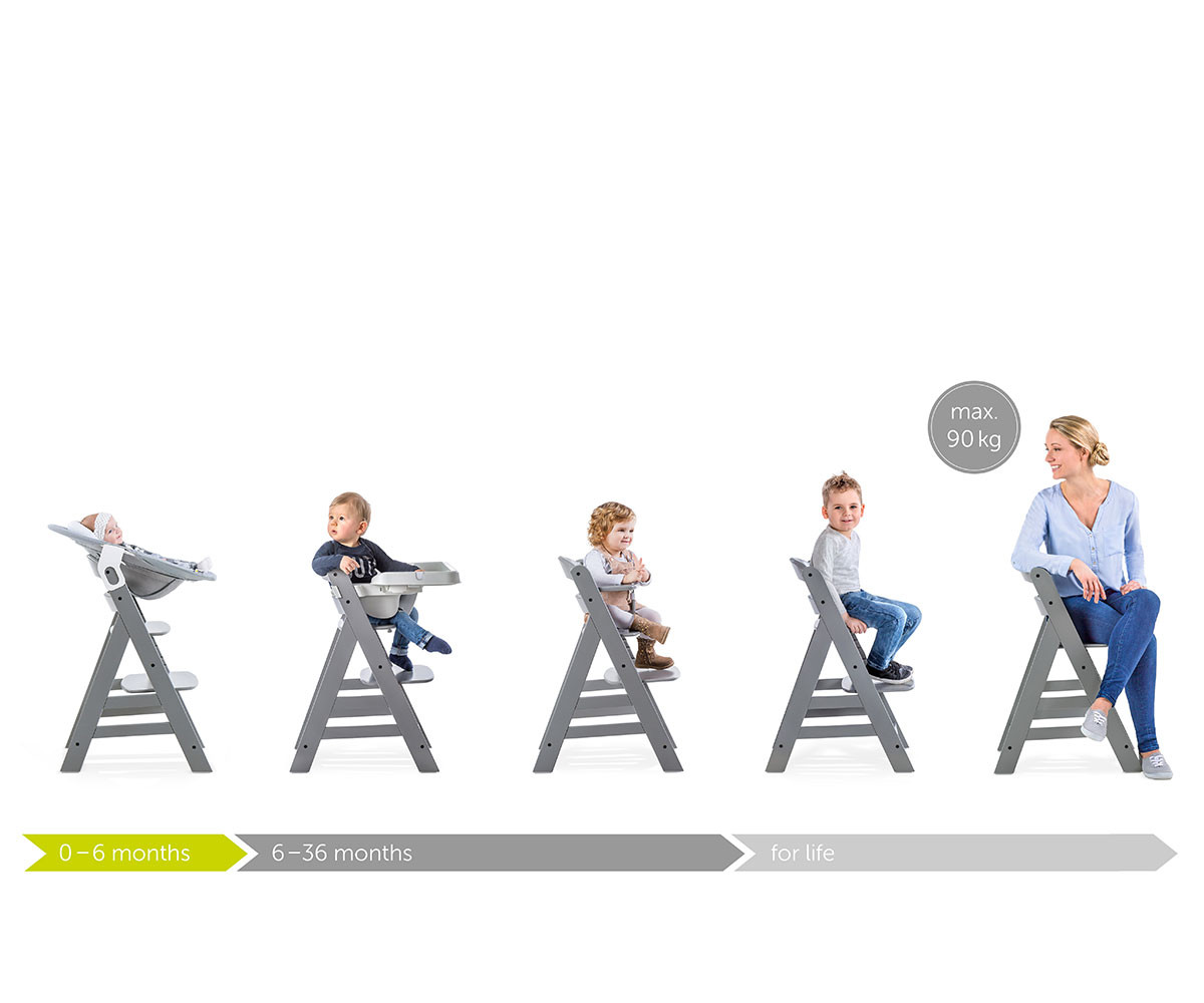 Alpha+ - дървеното столче за хранене, което расте заедно с детето.