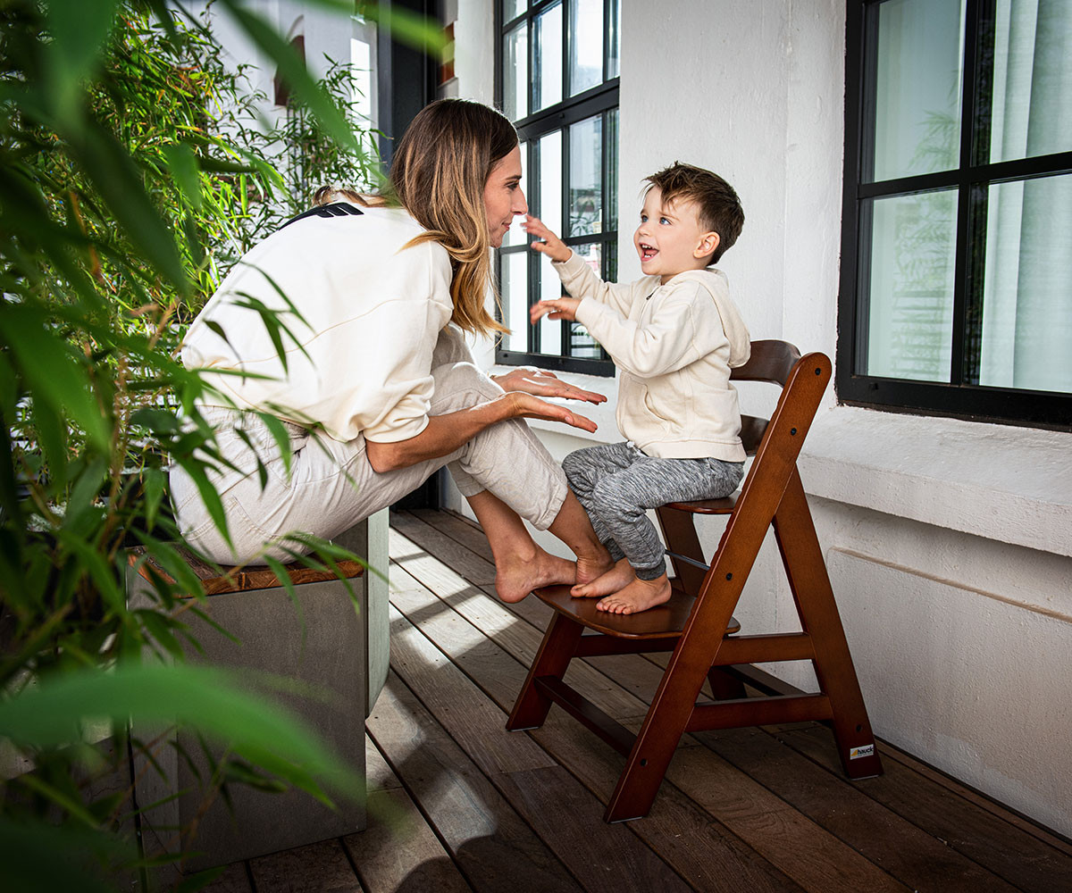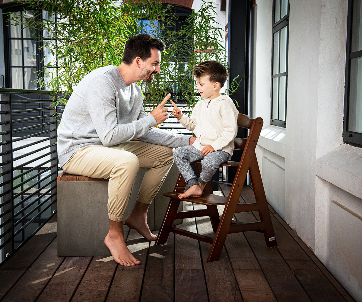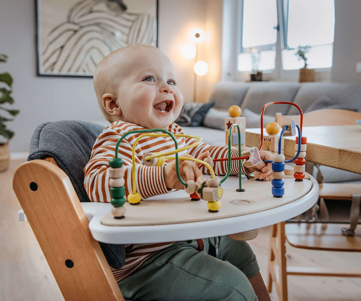 Alpha+ - дървеното столче за хранене, което расте заедно с детето.