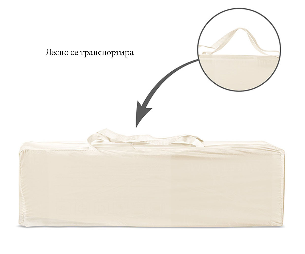 Пластмасовите детайли трябва редовно да се почистват с влажна кърпа. Не използвайте абразиви. При нужда използвайте мек сапун и топла вода, за да почистите текстилните части. Прането на чантата може да извършите ръчно в топла вода, без да я гладите. Не използвайте белина. Съхранявайте продукта в сухи помещения. Не излагайте продукта на атмосферни влияния като вода, дъжд, сняг, влага или слънчева светлина. Ако използвате кошарата навън, почистете полепналия по краката прах, както и по останалите елементи, тъй като попаднал в механизма на ключалките, може да причини сериозна повреда. Не поставяйте кошарата в близост до отоплителни уреди, тъй като това може да повреди пластмасовите и текстилни части.