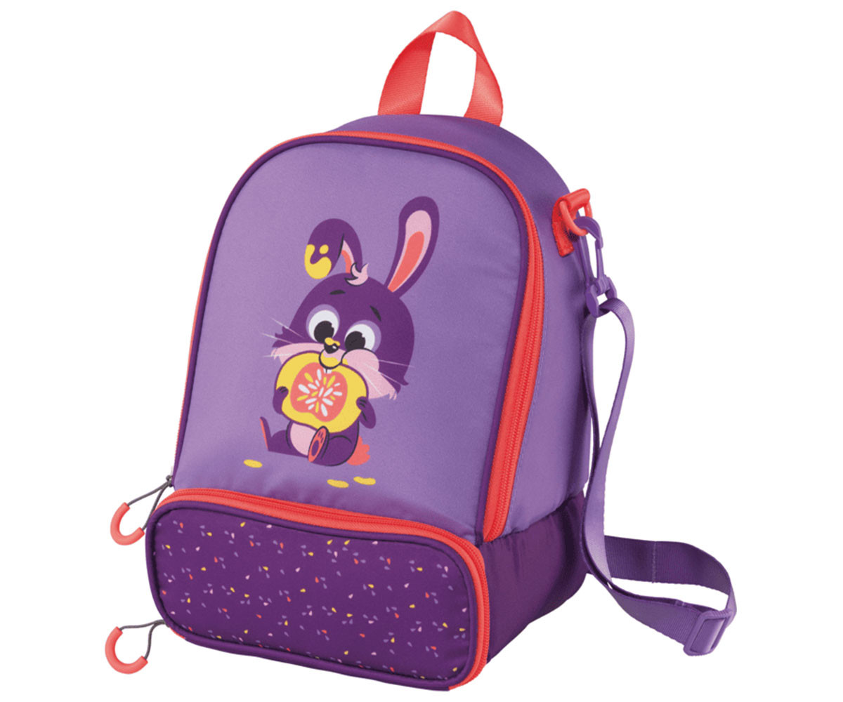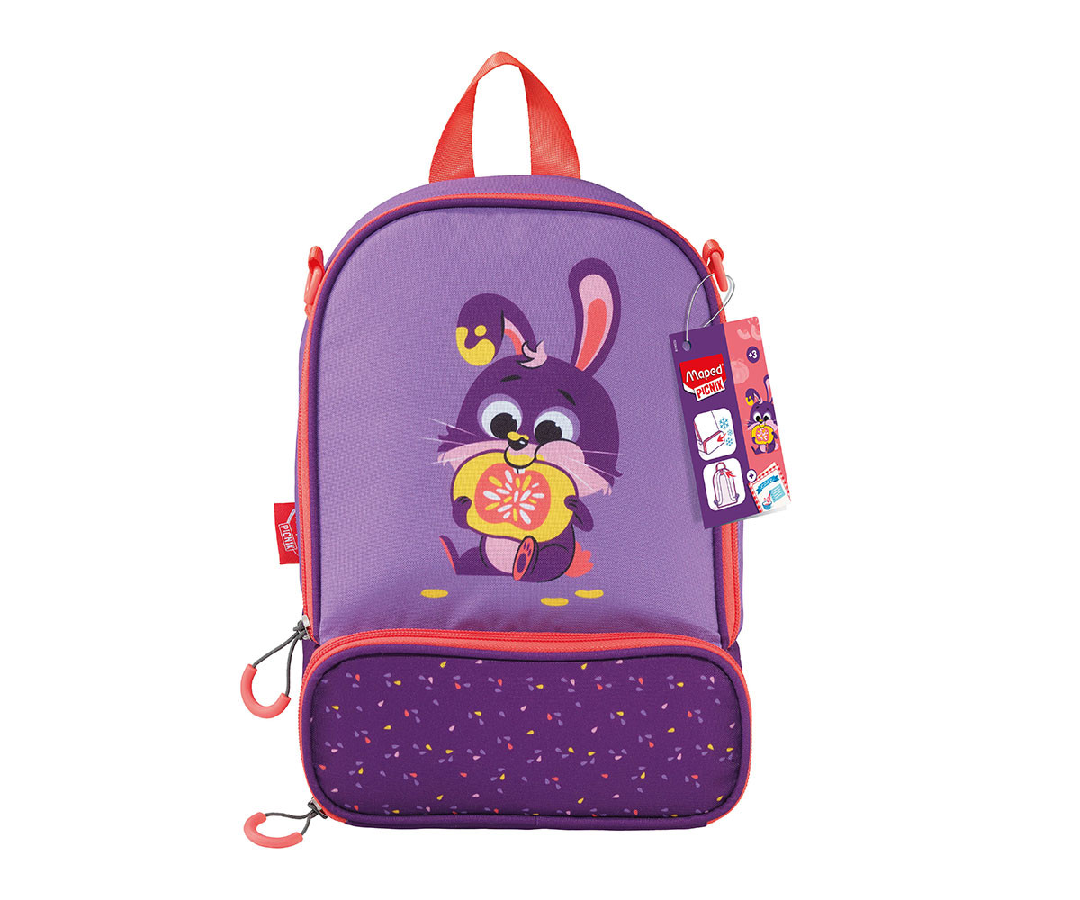 Раница MINIZ: 3 забавни дизайна! Изолира и запазва температурата дълго време. Четири възможности за носене, като раница, на рамото, в ръка или прикрепена към училищна раница. Етикет за надписване на името. Две отделения, съвместими с бутилка и кутия от серията MINIZ!