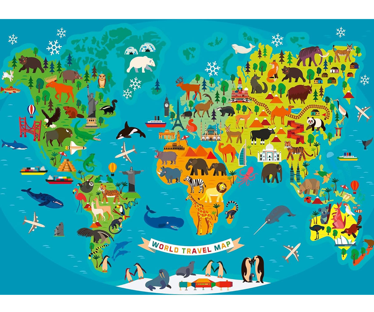 Тази карта на света показва континентите и подчертава някои от най-известните забележителности, включително Биг Бен (Великобритания), Айфеловата кула (Франция), Тадж Махал (Индия), Статуята на свободата (САЩ), Сидни опера хаус (Австралия) и Великата китайска стена. Картата също така представя разнообразни животински видове от всеки континент, което я прави изключително интересна за откриване, разглеждане и обсъждане. Този цветен и образователен пъзел е чудесен начин да се отпуснете и да прекарате време далеч от екрани - самостоятелно или със семейството и приятели. Пъзелът от 150 части с XXL големи елементи е изработен от висококачествени материали и е с размер 49 x 36 см след сглобяване. Подходящ за деца над 7 години. Отговаря на всички необходими стандарти за безопасност във Великобритания и ЕС. Най-продаваната марка пъзели в света - с над 1 милиард продадени пъзела, те са отличен подарък както за деца, така и за възрастни и са съвместими с подложки за редене. Пъзелите са изработени от дебел картон и специална ленена хартия, която осигурява изображение без отблясъци и максимално приятно изживяване. Oт забавни семейни моменти до ползи за развитието и ежедневна релаксация, пъзелите носят множество положителни ефекти. Перфектен подарък за рожден ден или Коледа!