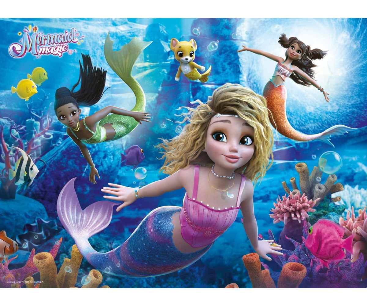 Пъзелите Ravensburger означават качество, перфектно напасване, екологични материали и много забавление, което развива уменията и концентрацията на децата! Потопете се в магическия подводен свят на Mermaid Magic с този пъзел от 200 части на Ravensburger. В него ще откриете любимите русалки Мерлинда, Саша и Нериса, както и верния спътник на Саша - Бо Джуниър, очарователното „мерхуахуа“! Пъзелът включва още весели жълти рибки и блестящ коралов пейзаж, вдъхновен от популярния сериал на Netflix. Задължително попълнение за всеки фен на Mermaid Magic! Пъзелът от 200 части с XXL големи елементи е изработен от висококачествени материали и е с размер 49 x 36 см след сглобяване. Подходящ за деца над 8 години. Отговаря на всички необходими стандарти за безопасност във Великобритания и ЕС.