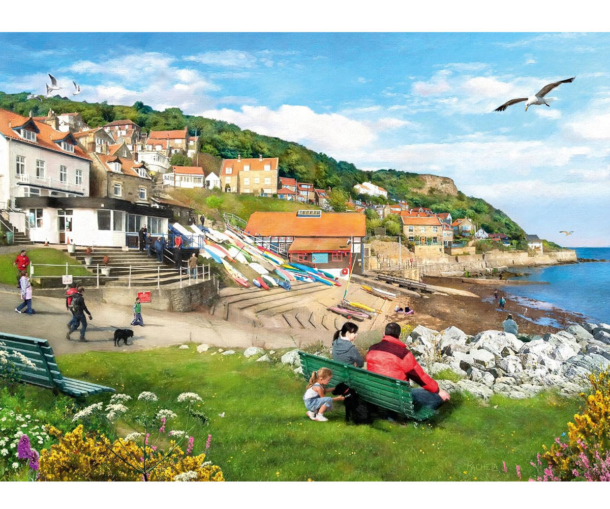 Това е първата серия пъзели, изобразяващи живописни пейзажи. Уитби е известен по целия свят като дом на кораба на капитан Кук, HMS Endeavour, който започва своето пътуване до Таити през 1768 година. Градът е известен и със своите връзки с романа на Брам Стокър „Дракула“, и остава център за феновете на всичко готическо. Посетете град Уитби днес и открийте богатство от история, чудесни гледки, натоварено пристанище, отлична риба с картофи и топло посрещане! Защитеното крайбрежие на залива Рънсуик, северно от Уитби, е идеално място за търсене на морски животинки и фосили, или просто за наслаждаване на гледката. Runswick Bay е едно от няколкото невероятни морски села, които могат да бъдат открити по крайбрежието на Йоркшир. Силните цветове и богатите детайли гарантират много часове забавление със сглобяване на пъзелите. В комплекта ще откриете и листовка, включваща допълнителна снимка на пъзела за справка. С два пъзела, всеки от които съдържа 500 части, този комплект предлага едновременно предизвикателство и пътешествие. Пъзел 2x500 части са изработени от материали с високо качество и са с размер 49 x 36 см, когато са сглобени. Перфектни за възрастни и идеални пъзели за деца на възраст 10 години и нагоре. Всяко парче има уникална форма и позволява перфектно съединяване на избраната картинка. Пъзелите Ravensburger са перфектни за релаксация след работен ден или училище и за приятно прекарване на време със семейството. Качеството на пъзелите Ravensburger е признато и оценено. Стани част от милионите хора, които са се насладили на игровия свят на пъзелите с качествени продукти Ravensburger. Всяко парче пъзел има своя собствена форма, което го прави уникално, и те се съединяват перфектно помежду си.