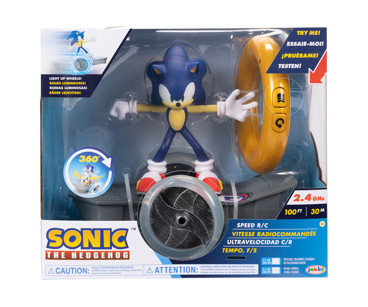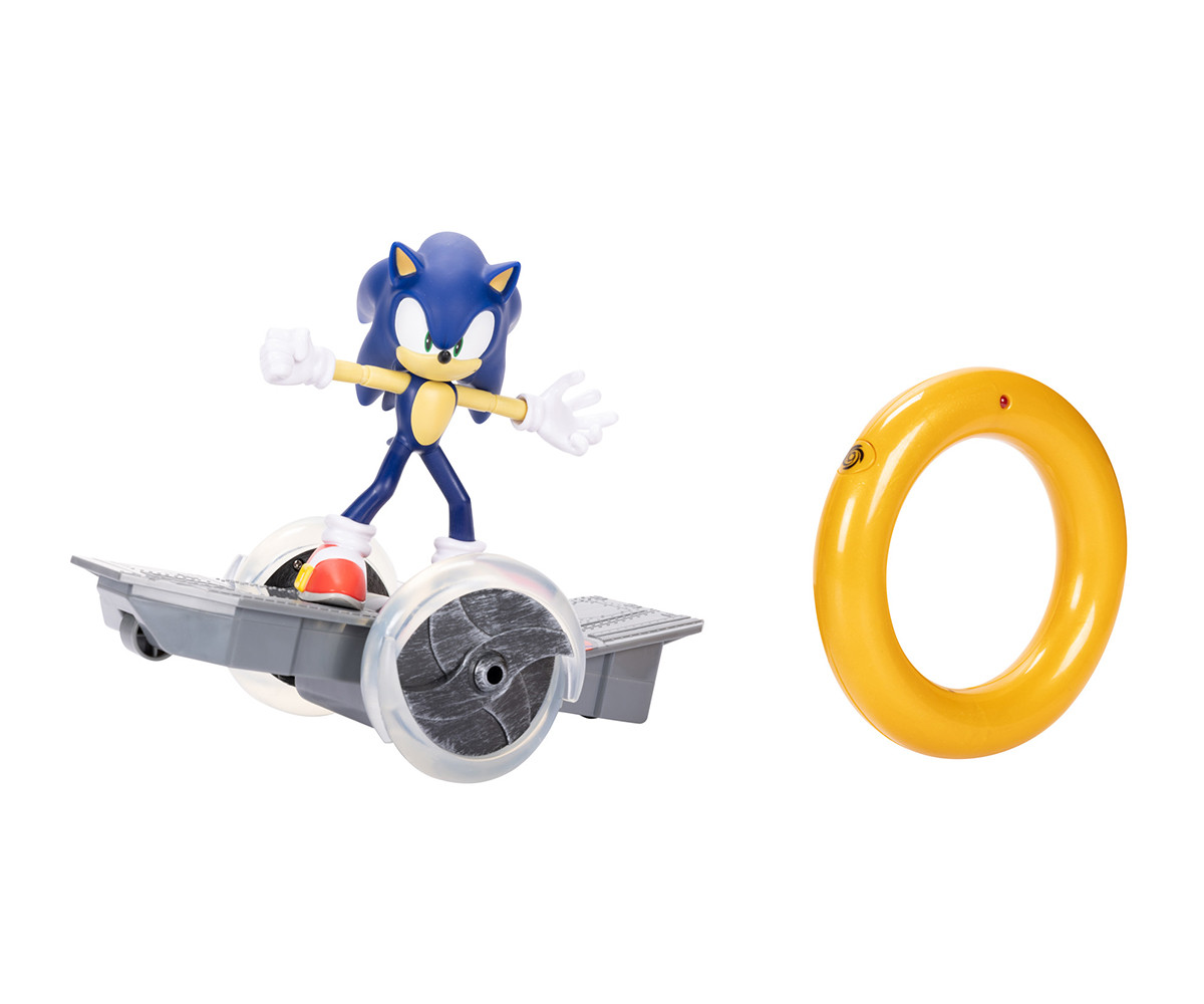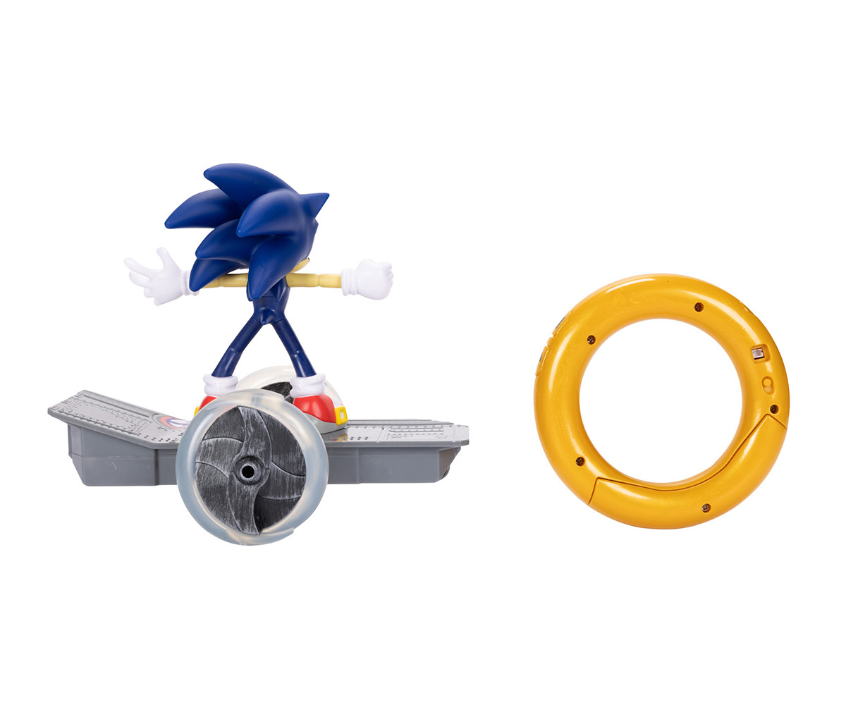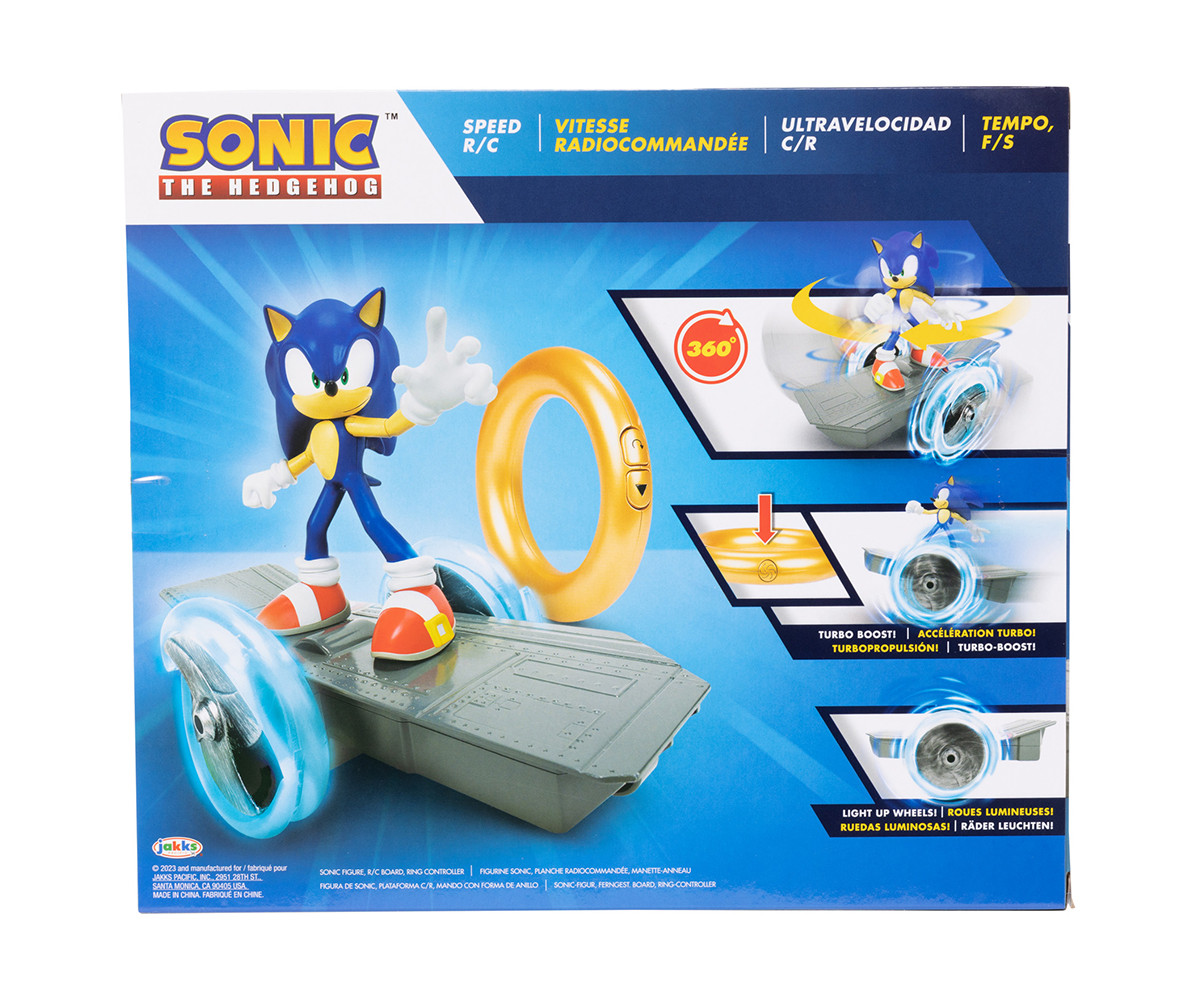 Комплектът включва подвижна Sonic фигура, R/C скейтборд и контролер Gold Ring. Контролерът е вдъхновен от пръстените на Sonic от видеоигрите Sonic the Hedgehog™ и има 3 бутона за пълен контрол: напред, завъртане и завъртане на 360 градуса, както и Turbo режим, който осветява колелата за този допълнителен тласък! Sonic Skate R/C е в мащаб приблизително 1:5 с дизайн, вдъхновен от видеоигрите Sonic the Hedgehog™.