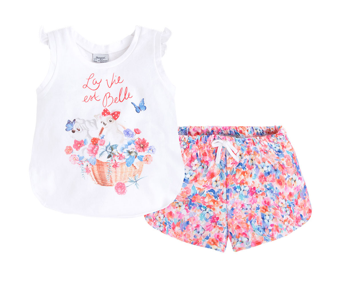 Детска дрешка Mayoral - Тениска с кученце и шорти момиче, цвят 82, 2-9 г., ръст 92-134 см. Състав: 95% Памук, 5% Еластан.