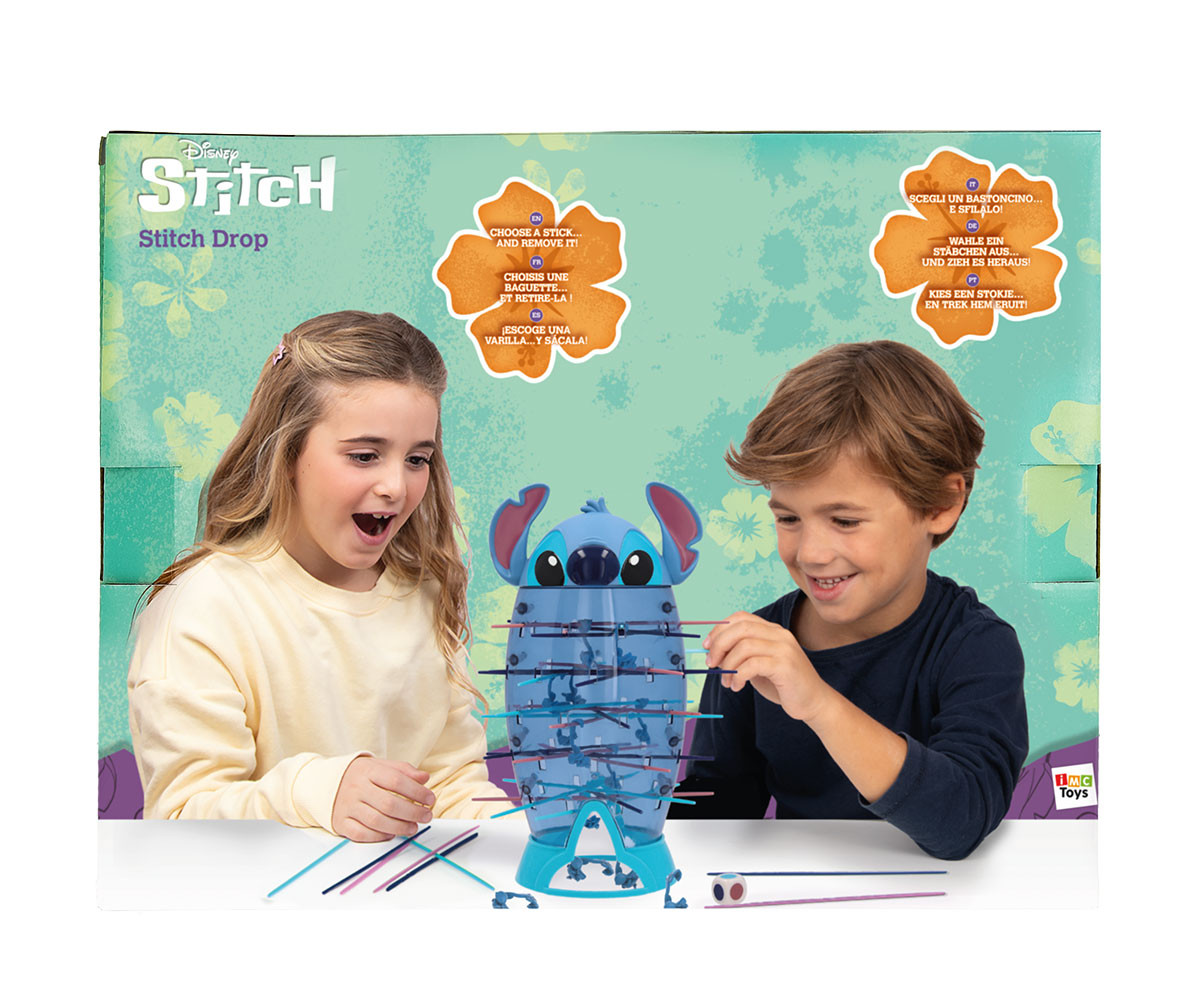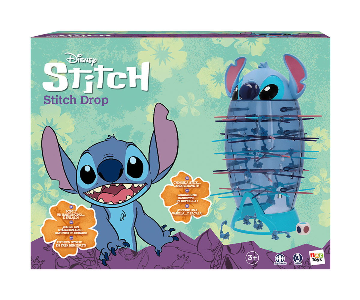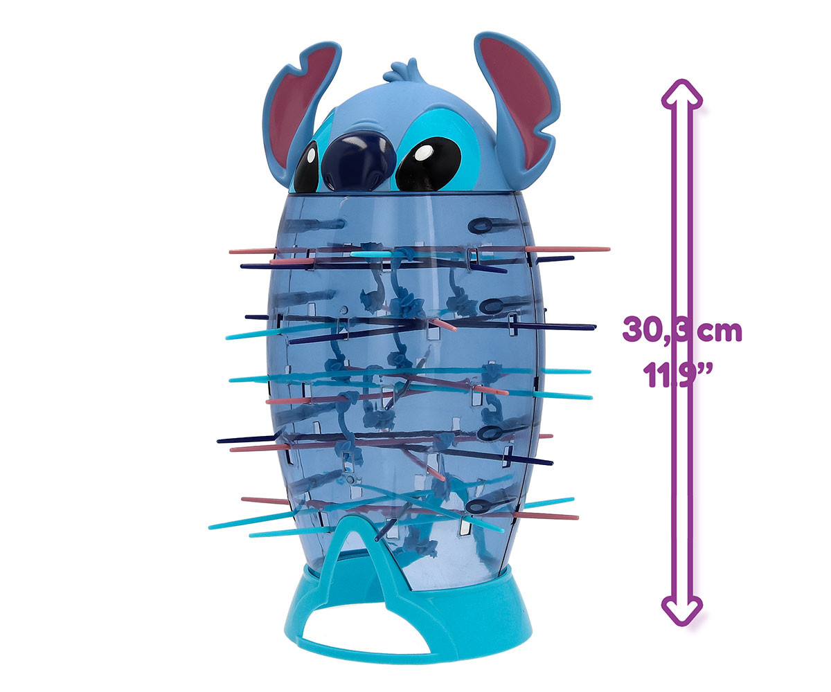 Stitch Drop! Отлична игра за двама или повече играчи, която ще тества вашите умения за прецизност. Човекът, който е съборил най-малко фигурки на Ститч след като премахне пръчките, печели! Stitch Drop ще ви осигури часове забавление. С популярния Disney герой Ститч, тази игра за падане е задължителна за фенове и колекционери. Изпитайте своята сръчност и координация между ръцете и очите, като пускате цветните пръчки през сложния жичен лабиринт. Регулирайте нивото на трудност, като пренареждате жиците, за да осигурите безкрайна повторяемост и удоволствие.