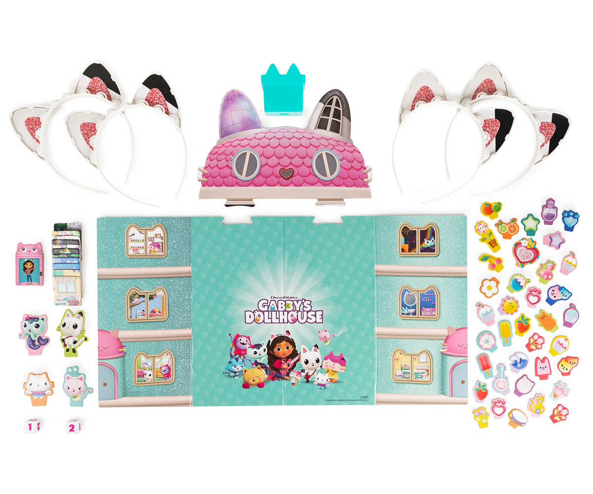 Вдъхновена от популярния сериал в Netflix: Ако детето ти обожава Gabby’s Dollhouse, тази настолна игра е идеалният избор! Къщата изглежда точно като в сериала и включва 4 сладки диадеми с котешки уши и 40 уникални картонени аксесоари за събиране;