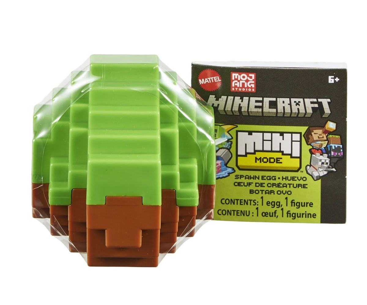 Усетете вълнението от Minecraft с колекцията Mini Mode Spawn Egg и фигурки. Във всяко Spawn Egg се намира мини фигура с размер 4 см в анимирана поза – просто отворете, за да откриете кой герой ви очаква вътре! Мини фигурката може да бъде премахната и поставена обратно в отворената капсула за игра и изложение. Spawn Eggs са тематизирани с различни биоми от играта, които помагат за създаване на Майнкрафт атмосфера, правейки ги забавни за събиране. Феновете на възраст 6 години и повече ще искат да ги съберат всички!